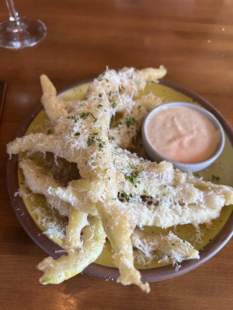 Sagra is an Italian Eatery above Piggy’s on Front Street in La Crosse. It was recommended to us by several residents. It did not disappoint. We started with an Arancini appetizer. We have had arancini before, but NEVER like this. It’s the best we have ever had. Instead of being rice heavy, it was cheese heavy. They were almost like a Wisconsin cheese curd. The pecorino, a mixture of Italian cheeses, was melty and delicious, especially dipped in the buttermilk dipping sauce. We also ordered the special appetizer, fried wax beans. The breading was very light, almost like tempura. The dipping sauce added the flavor. They were good, but the Arancini definitely stood out. For entrees we got a crawfish dish and a chicken dish. Both were generous portions, which allowed us to have leftovers for lunch the following day. The Crawfish Fra Diavola was filled with crawfish and was very flavorful with fresh ingredients. The Chicken Scarpariello was delicious. The polenta was rich and creamy. The chicken comes bone in and skin on, which keeps it juicy. This dish also had Italian sausage and fresh vegetables. I really enjoyed the Italian sausage as a contrast to the chicken. The only disappointment was when we asked the waitress what 5 dishes were on the “chef’s market menu,” she didn’t know and really wouldn’t elaborate. I wanted to try that, but at $58 per person, the requirement for full table participation, and no information, I wasn’t willing to take the chance.