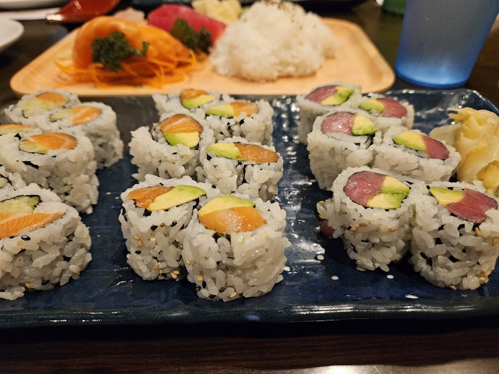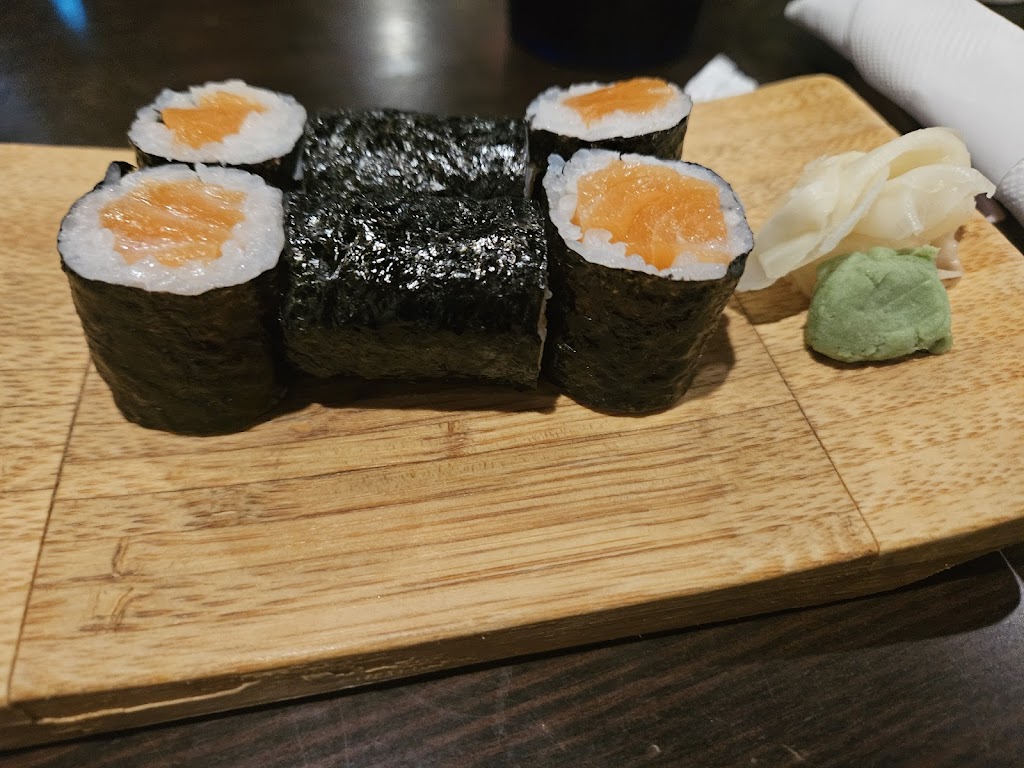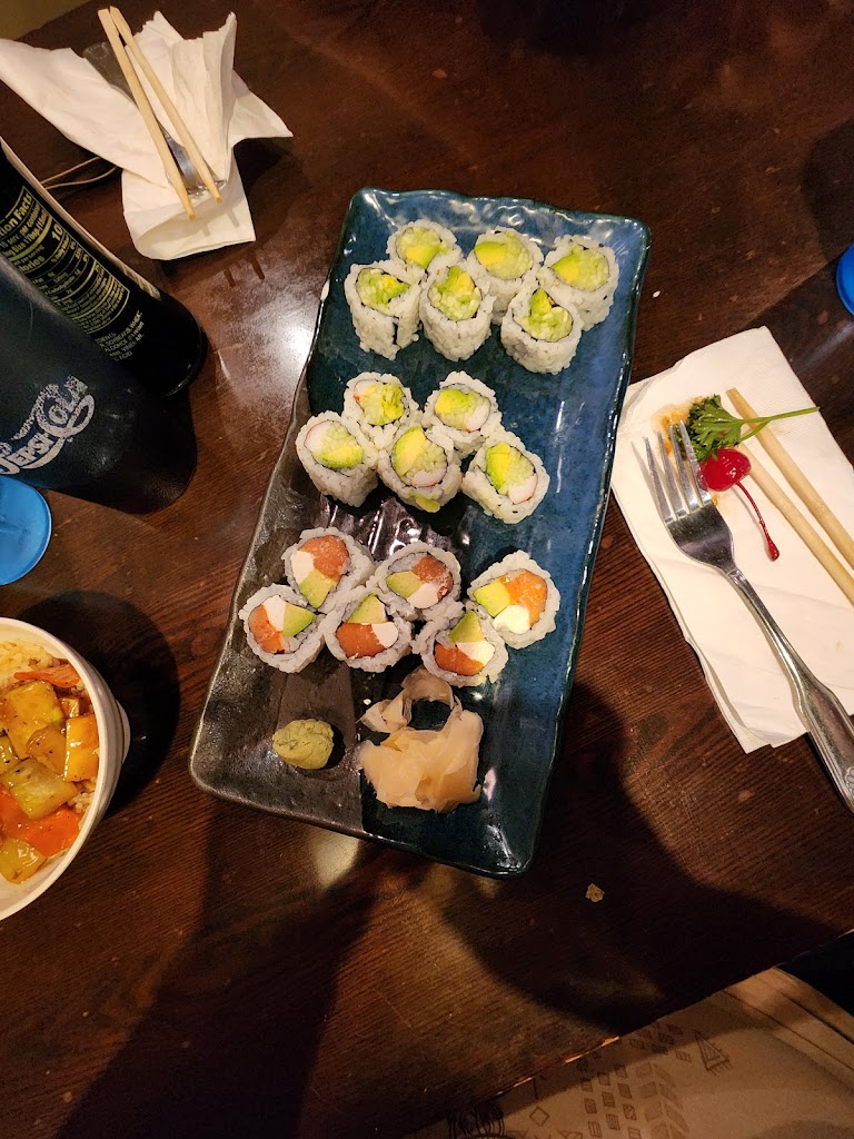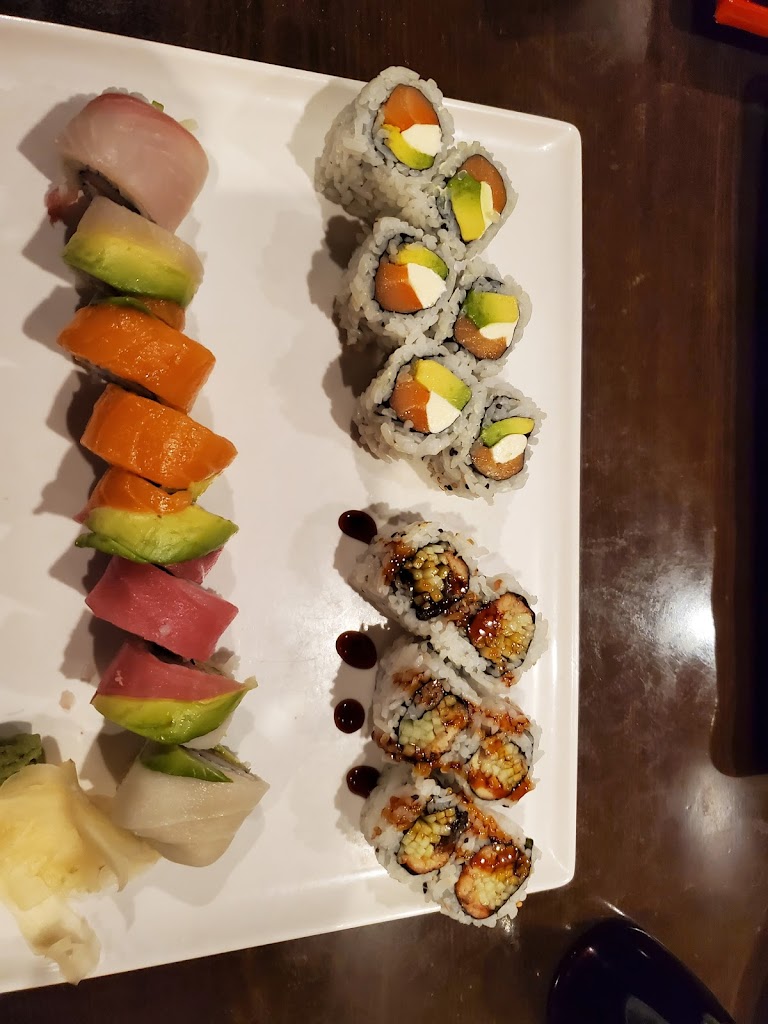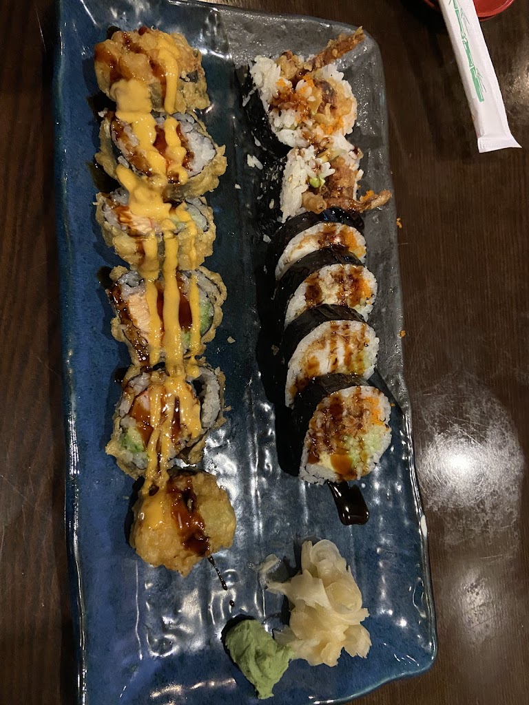 Our waitress was lovely, she was very attentive and ensured we were good throughout our visit. My partner and I thought the food was okay. The Gyoza appetizer was our favorite part. I had the yellow fin roll and spicy tuna. He had the Snow Stone roll. Yellow Fin was pretty good, I would’ve ordered that instead of the spicy tuna had I known. The spicy tuna is generally a classic favorite of mine; however, the chewiness and flavor of the “tuna” had me questioning what seafood I was eating, it reminded me of imitation crab. My partner’s roll did not state it came with shrimp tempura, but that is what came with the Snow Stone. I would be willing to try the hot food next time, but the quality of the sushi is not worth it.