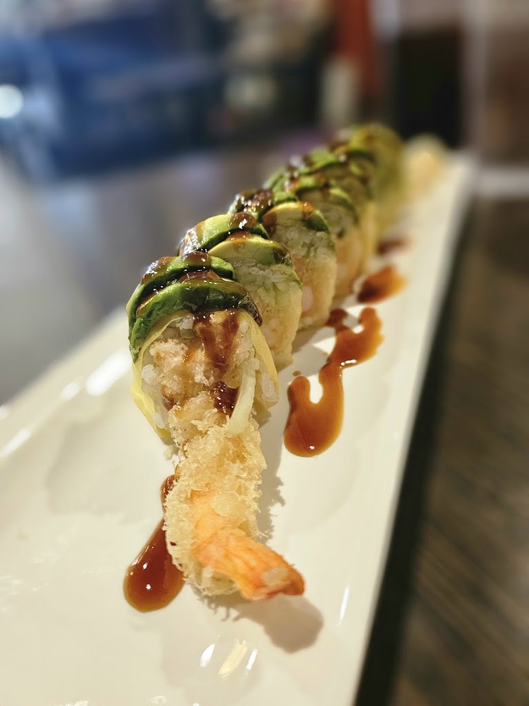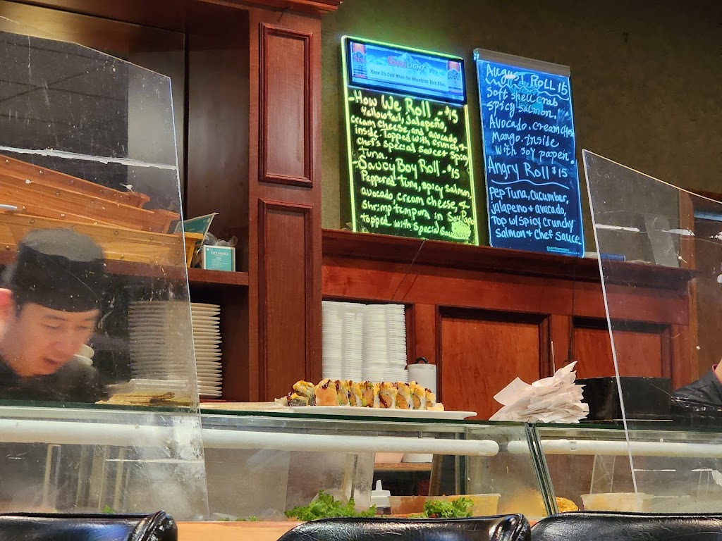 We serve Japanese sushi, sashimi, teriyaki, tempura for dine in, take out and delivery.