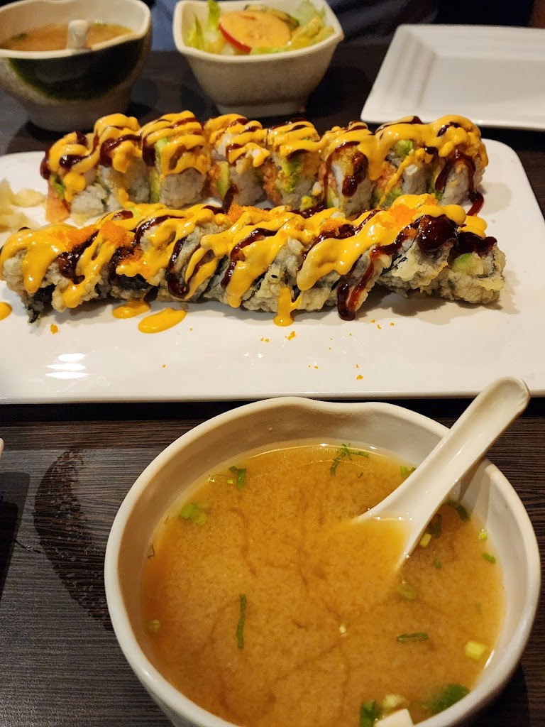 The food has always been on point. This was my 6th time dining in. I usually eat at the bar, because I am impatient. When I do have to wait for a table, it’s usually rather short. Tonight was packed because of the holiday and multiple parties partaking in some hibachi action. I would recommend this place for sushi and hibachi. There are other options on the menu, such as Korean food and Japanese Cuisine such as Udon, but I have not yet tried it out yet. I got to taste my wife’s Udon, which was pretty good, except I’m not a fond onion soup fan. I’m more of a miso, beef broth, or egg drop type of soup fan. I’m sure I would have appreciated it more if it had less onions, or caramelized onions in the broth.