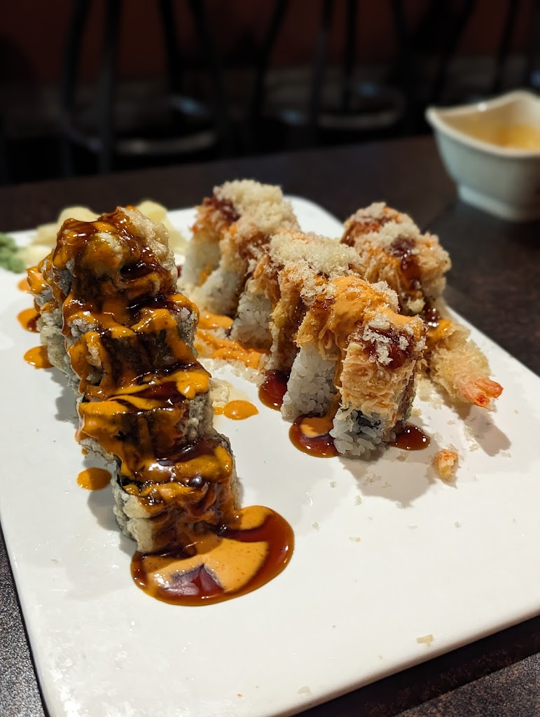 They're pretty good, not much for choice up in these parts. I was just there for dinner - the place looks a bit sad after COVID. We ordred like $60 worth of sushi and a veggie bentobox ($22). The Volcano rolls are so good. Any tempura roll won't disappoint. It's pretty expensive for some rolls ($15+) and you don't get very much and it's very salty. We ordered the plum wine and they must have a different vendor because it tasted horribly sweet. I had the chicken tempura, chicken udon and yaki soba, all at separate times last year. I ordered carryout and the food; it was cold when I picked it up even though I was ready for the pickup as soon as it notified me. The udon also had a hair in it, but they made it right and credited me like $9 for next time I come in.