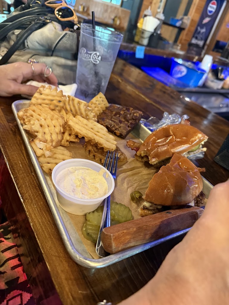 Great food and good service. Had a group of 9. Tried many different foods. All was good! Waffle fries and Cajun sour cream were great!