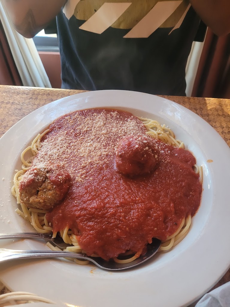 Food was good, 2 meatballs on spaghetti was a little sad, and 6 pieces of chicken in pasta was as well, but Service was good, however it was slow service, I'm assuming due to staff shortage. We came to dine 30 minutes after it opened, and the area was sat in was pretty dirty (you can tell it's not swept or mopped) would've given more stars but cleanliness where you eat is a must! I wonder what the kitchen looks like 😬