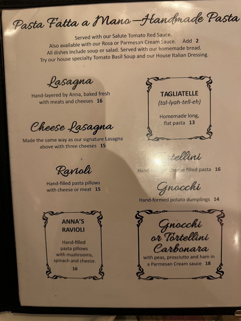 My choice, a restaurant specialty called Ann’s Ravioli, was the most bland, uninspired Italian dish I’ve ever eaten.