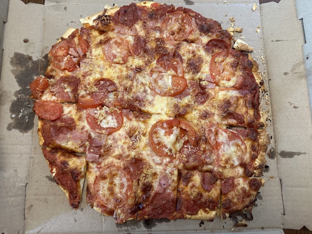 When we finally returned home to eat, we were let down that our pizza had very little to no sauce. There was literally so many bare spots with no sauce, the very little sauce there was, was mostly along the crust. Without sauce, the pizza was extremely bland, not to mention how little amount of toppings they had put on it!