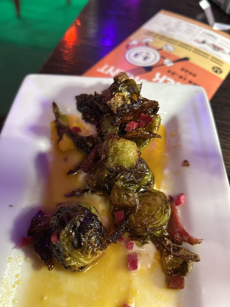 fried brussel sprouts are amazing, great veg options! woodsman pizza goes hard