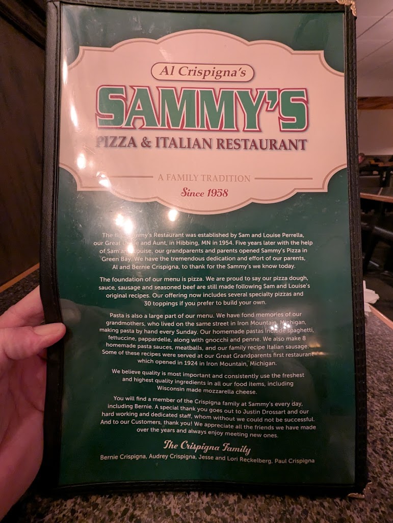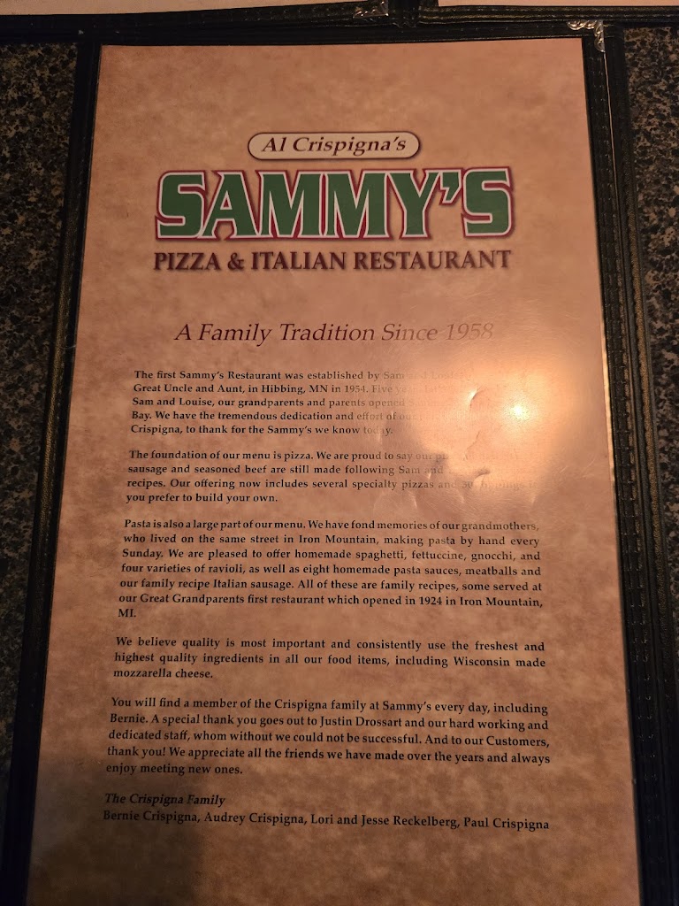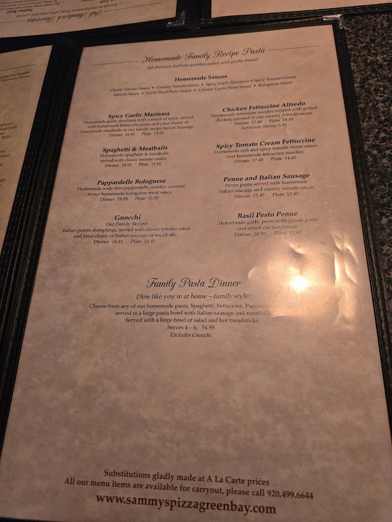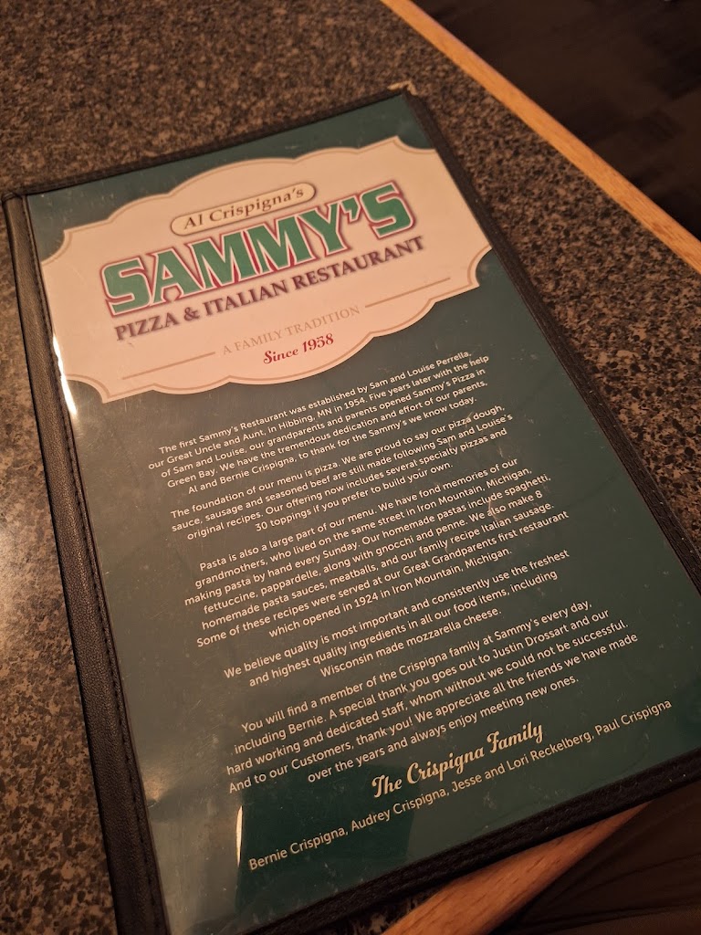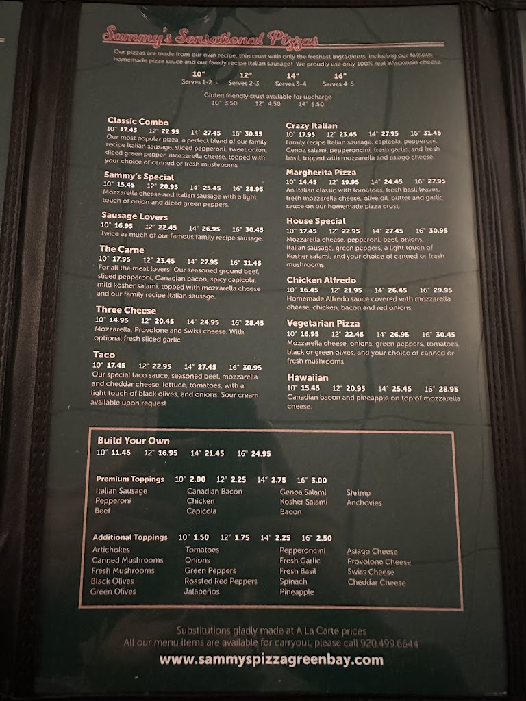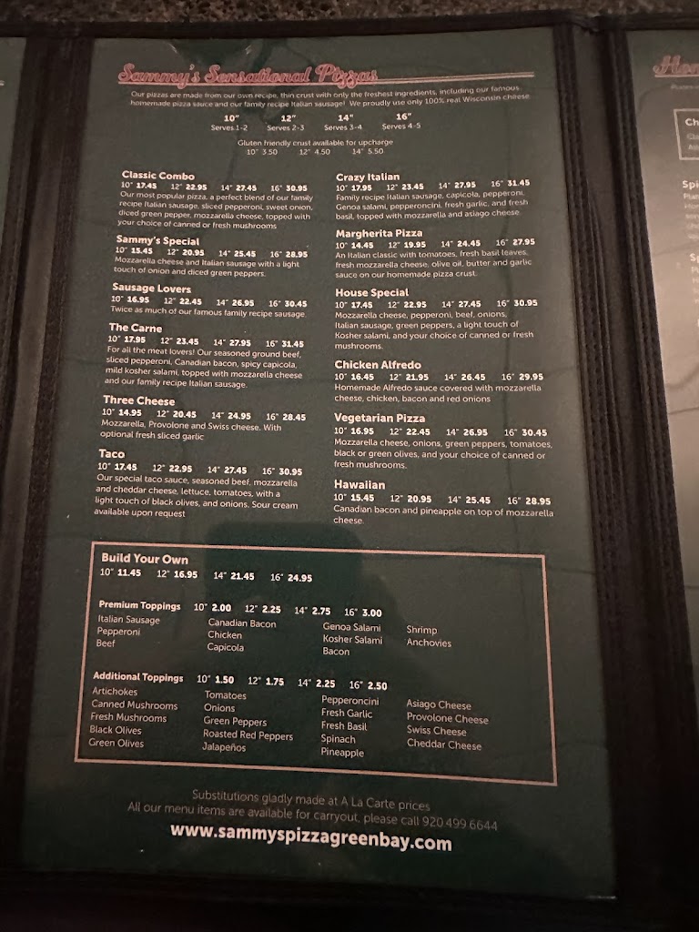 Excellent dinner last night! So glad you are open in Green Bay. I miss the Appleton location!! Best pizza ever 😋 One of my first job's was at Sammy's Pizza in Appleton.
