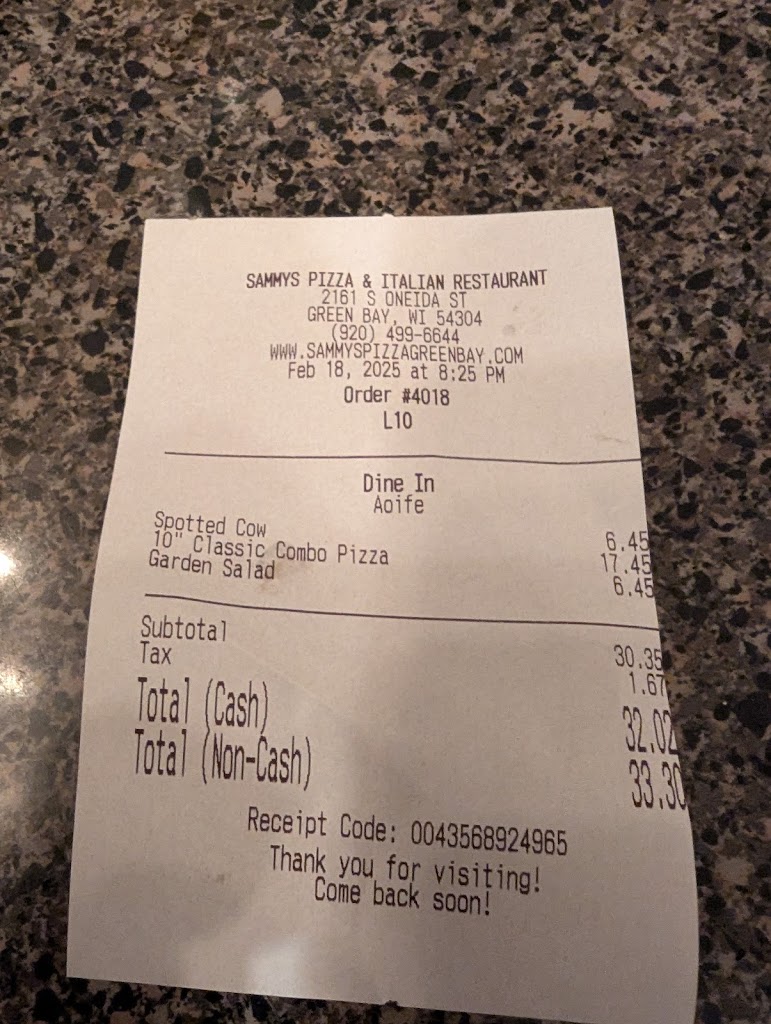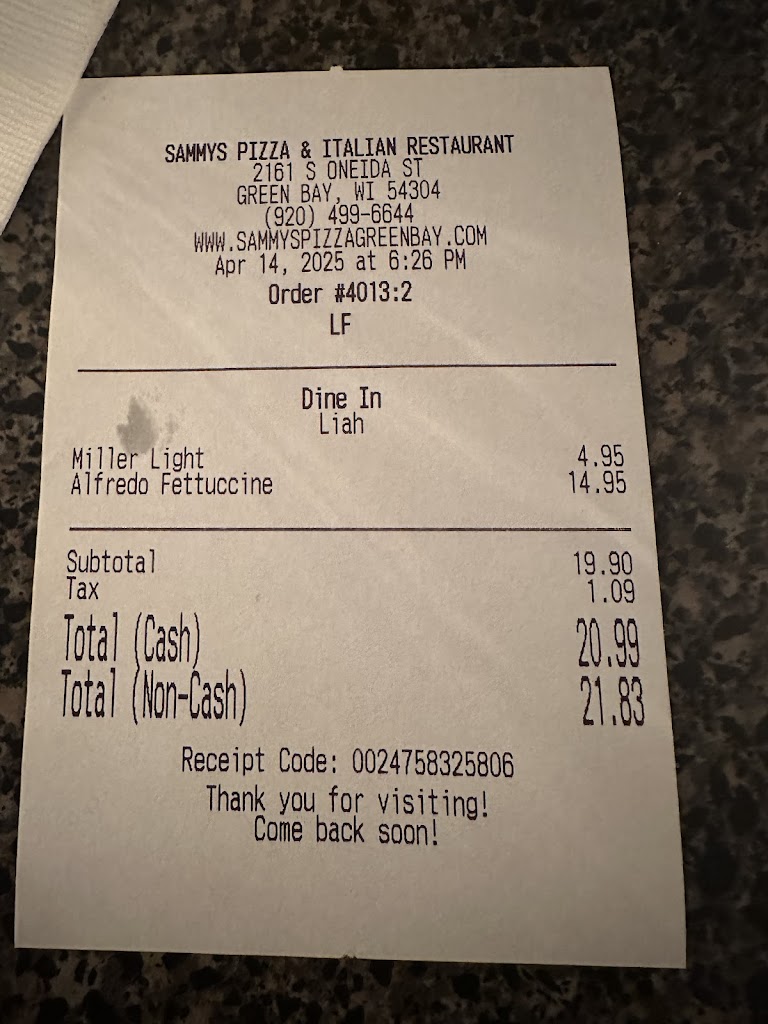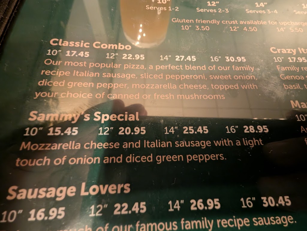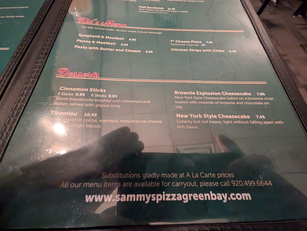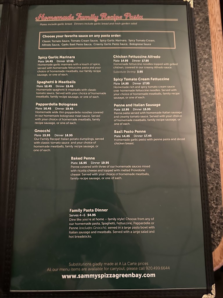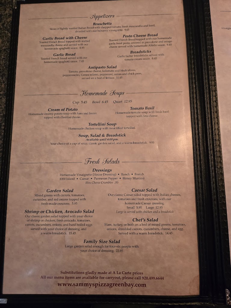 Excellent dinner last night! So glad you are open in Green Bay. I miss the Appleton location!! Best pizza ever 😋 One of my first job's was at Sammy's Pizza in Appleton.