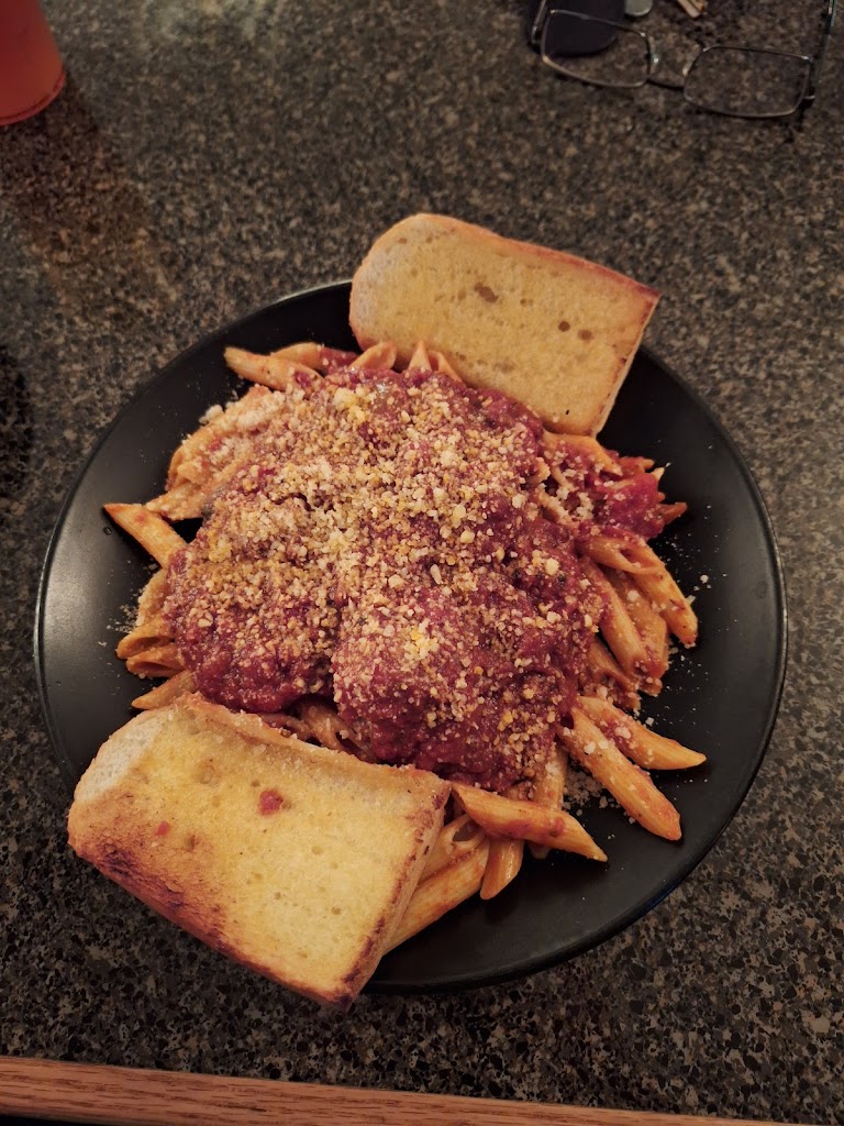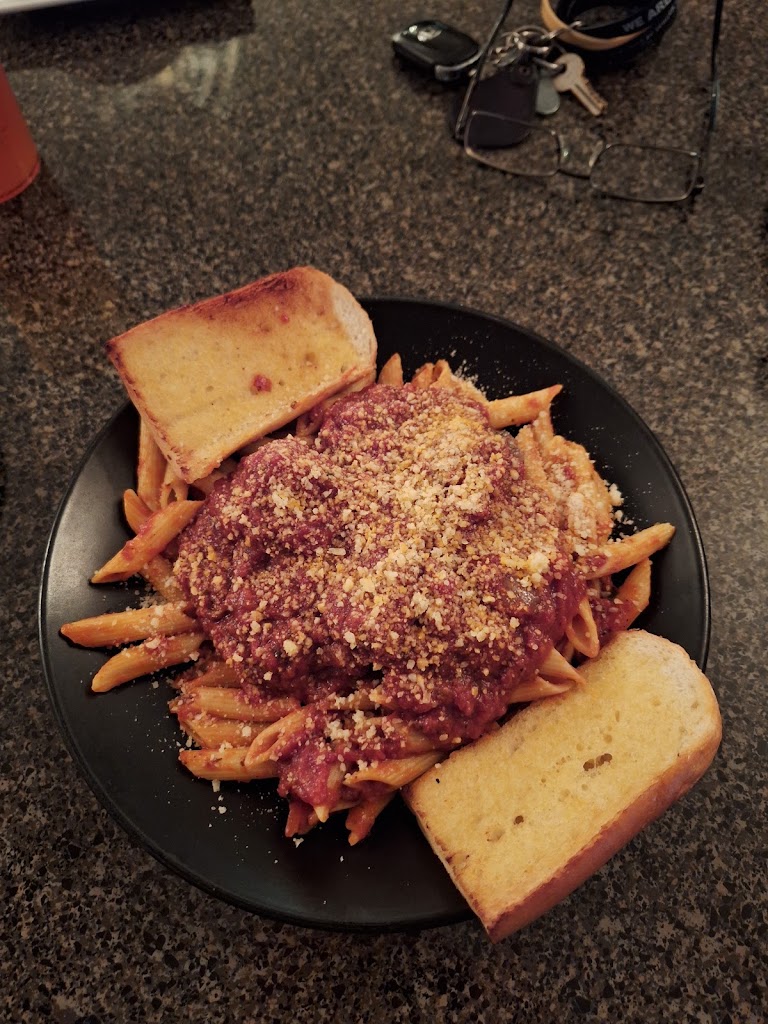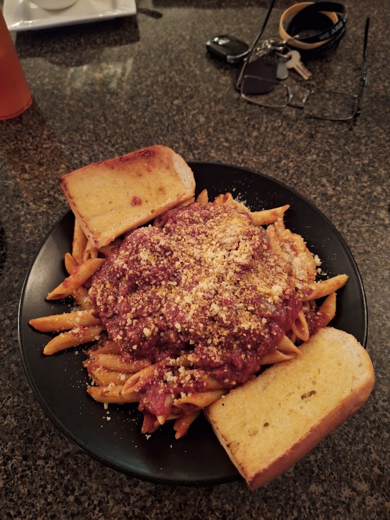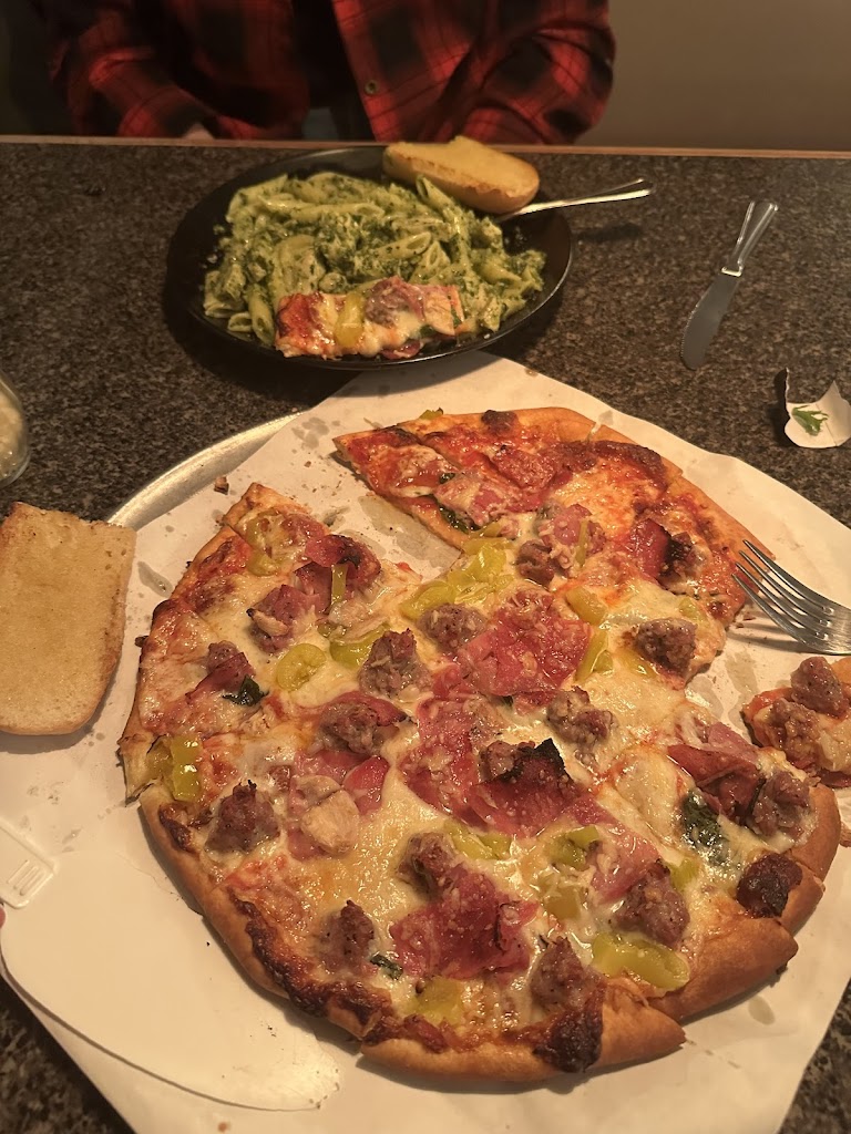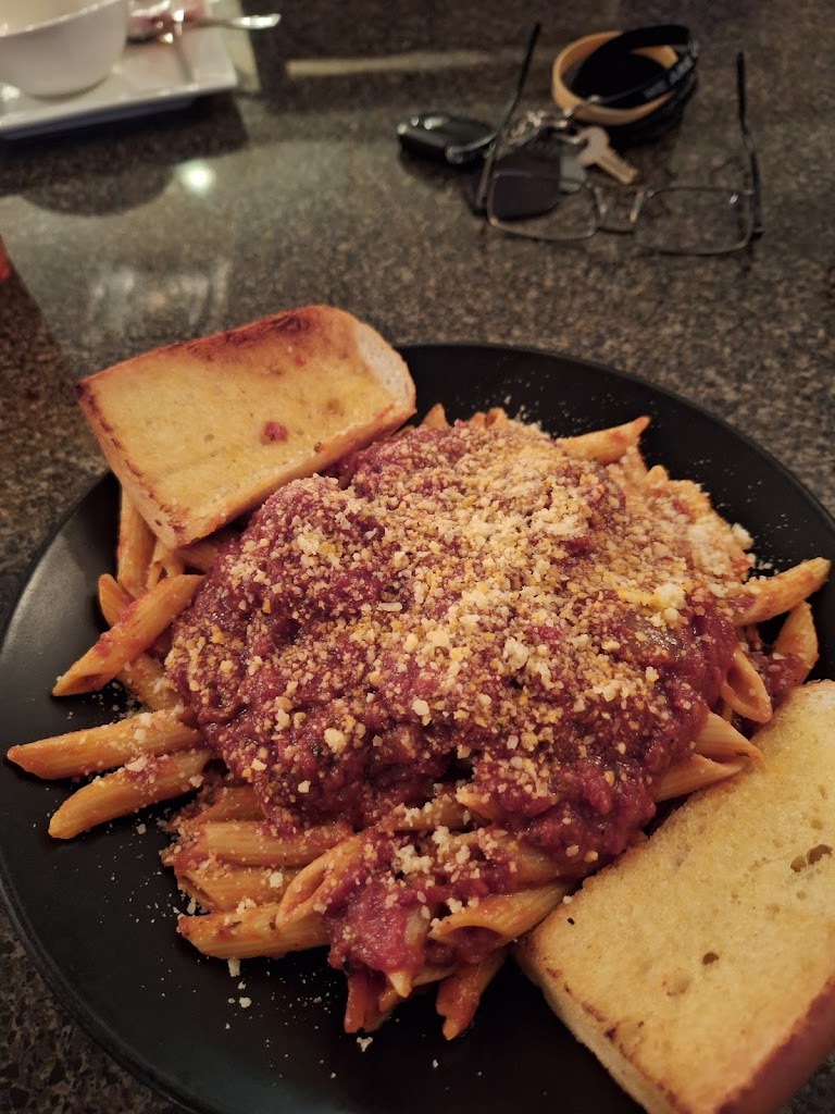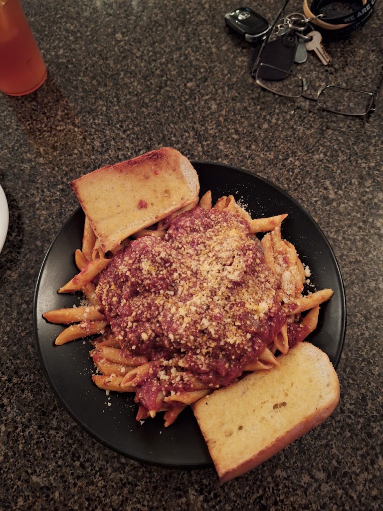 We had the penne pesto pasta and the crazy Italian pizza. Both were delicious! We’re excited to try more of the pizza and pasta options.