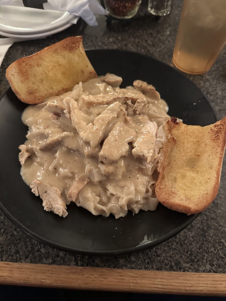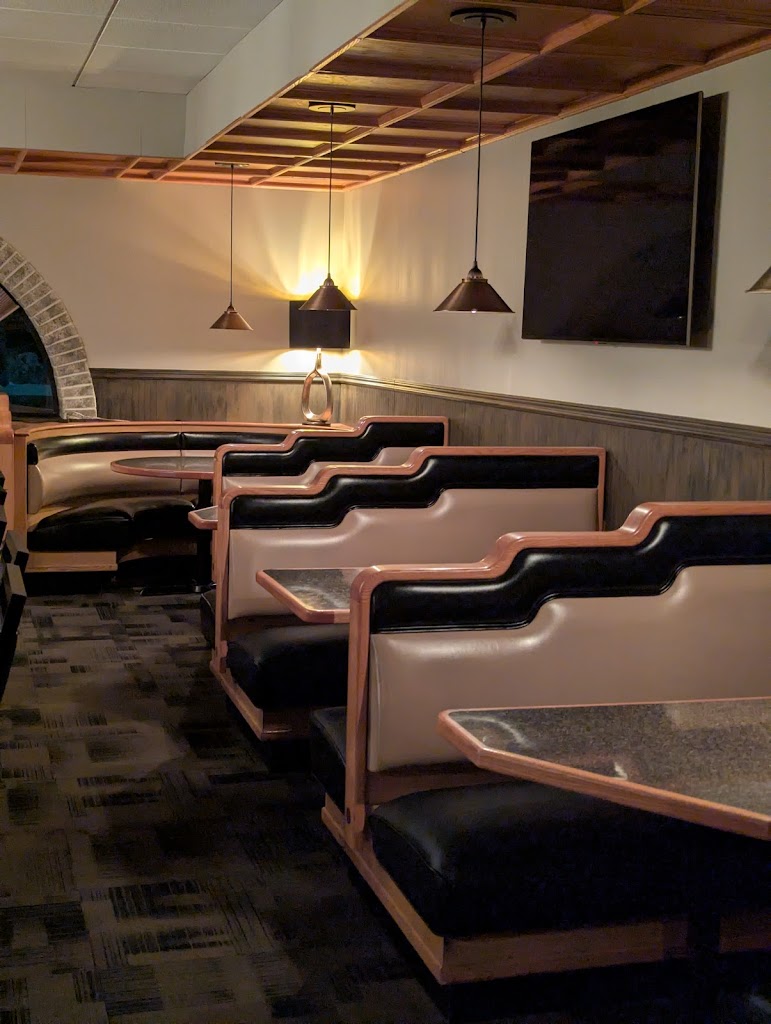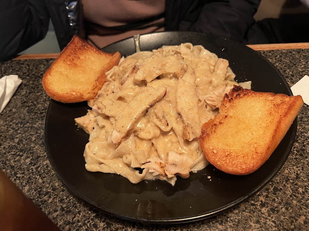 Beautiful nice ambience clean, we order cheese garlic bread for an appetizer which was wonderful, I had chicken Alfredo which was honestly just okay definitely not seasoned enough the flavor on that was really plain, we also ordered pizza and so did our dinner guests we arrived with, we had sausage and mushroom the pizza really didn't have flavor to it either like it should and they cut our pizza in squares which is okay but some pieces were cut small enough for a baby, if your going to cut squares cut evenly please, otherwise the customer service was wonderful and the experience was overall nice.
