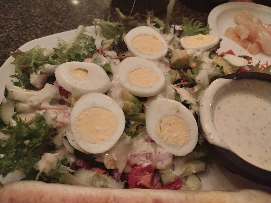 Cons: Was super busy, therefore noisy. The wait for both a table and the food was a little long, and they don't accept reservations. I got a salad with shrimp, but I was unaware that the shrimp would be raw. I didn't like that or the lack of warning about it. Raw shrimp aside, literally, the salad itself was fantastic.