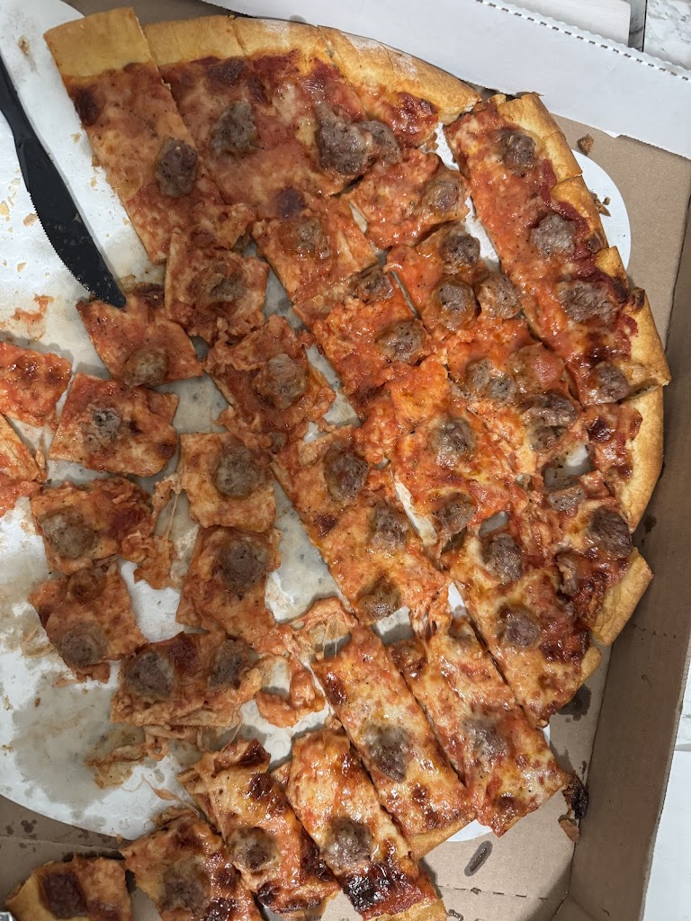 Typically when we go the pizza is great! The last few times were a disappointment. When ordering a pizza we typically like a slice of pizza… not 50 bite size soggy pizza pieces. Not sure if this is the new way of cutting their pizza? Or someone got cut happy, but definitely was disappointed for the money we spent.