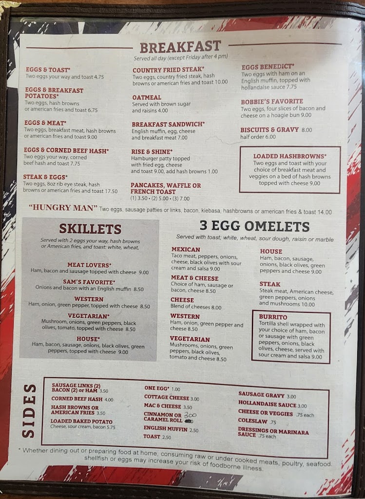 Very much a hometown cafe. Very attractive & clean. Value is very good with many, many, many entrees under $10.⁰⁰. Menu photos as of July 2024. I very rarely give 5 stars. This cafe really deserves it. I would definitely come back. Breakfast served all day except Friday. Bathrooms are large, clean, and HC accessible.