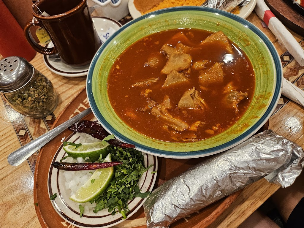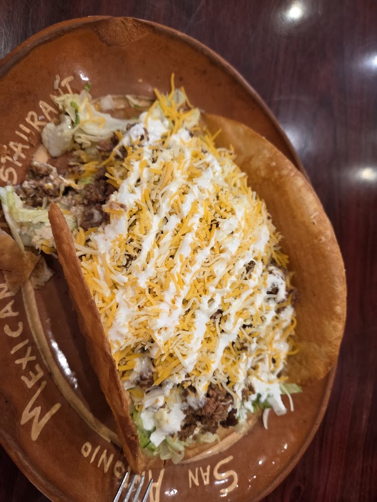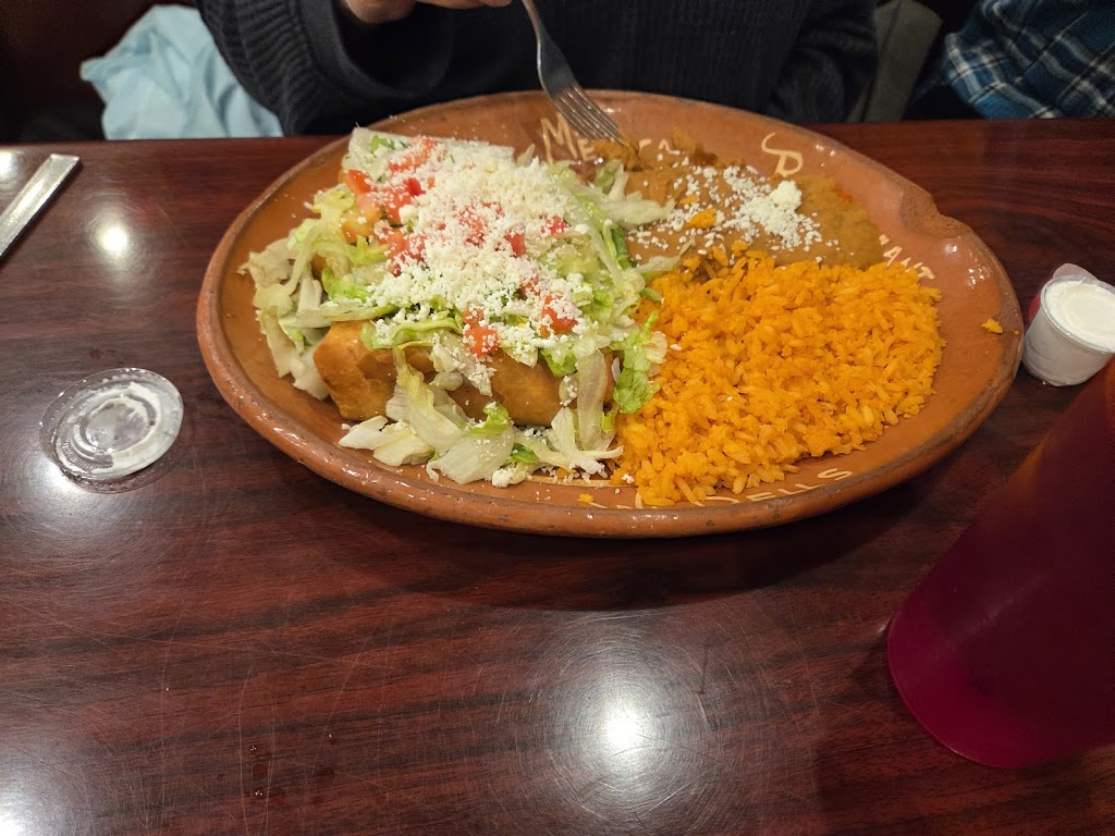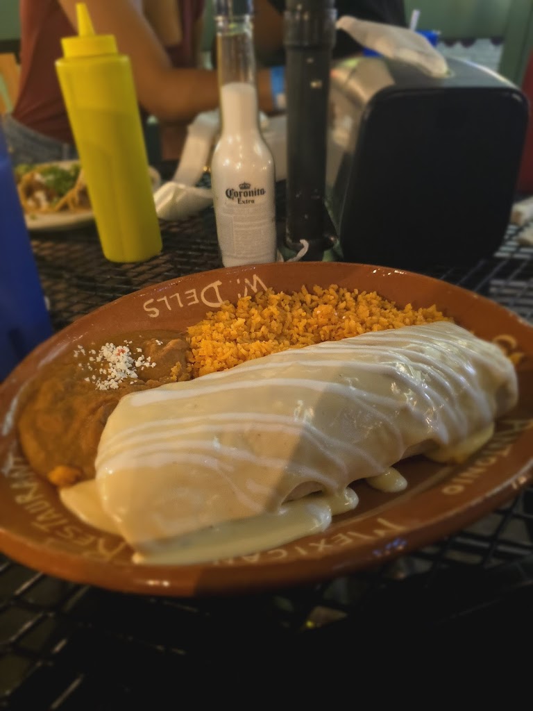 I ordered a margarita on the rocks. It was a good size and delicious. I also ordered chips with queso, that also came with traditional salsa and two others in bottles. I highly recommend the queso and salsa. The salsa has an unexpected bite, so those of you sensitive to spice, be careful. I also ordered a cheese enchilada ala carte. It was okay, but lacked the cheesiness that I expected. All around it was a nice visit. A bit spendy but that’s expected in a tourist town.