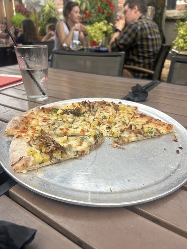 My wife, daughter and I were there for an alumni get together. Great pizza, meatballs, salads and desserts ( from the Bakery next door) were fantastic! Great wait staff friendly, efficient and kept in top of things, all in a beautiful patio on a beautiful night! Great times!