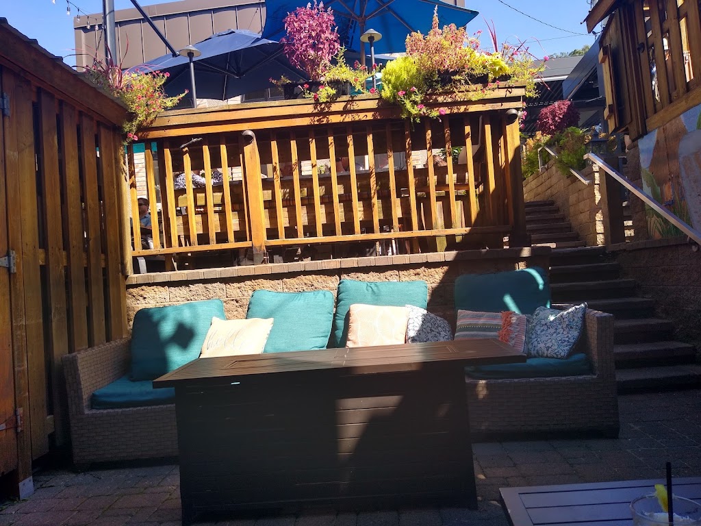 Amazing outdoor patio deck eating area. Very tranquil and relaxing. Good service and really good food. Loved the jerk chicken. Glad we got on the waiting list ahead of time. Highly recommend requesting outfit seating.