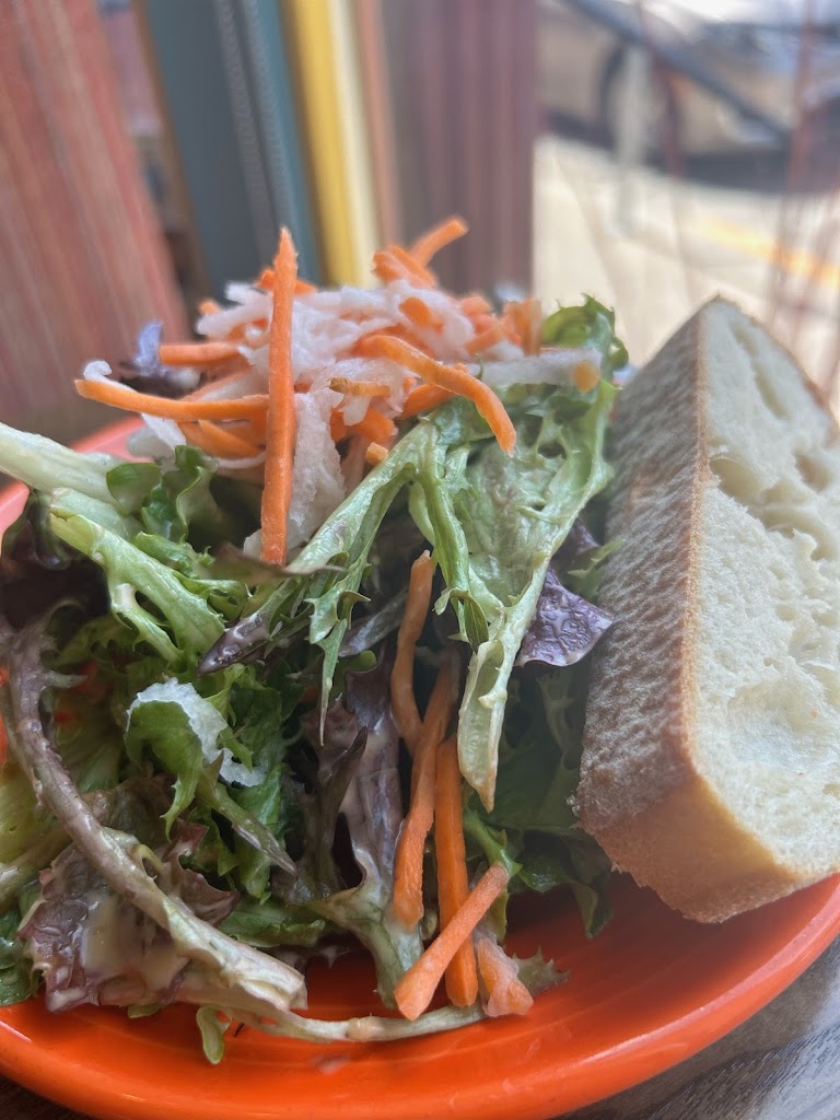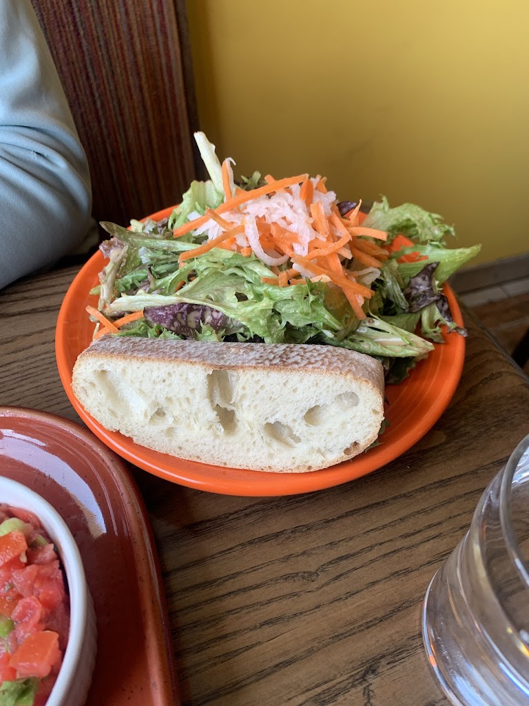 There is a bar, a narrow middle section with booths for two squished between two narrow walkways, and a mid sized booth section against the wall that had a range of booths that could fit 4- 8 ish people. We were sat in the middle section and it was a bit uncomfortable in the crowded restaurant. People bumped us a few times and the small table space didn’t really allow for space for an appetizer, small side salad and a beverage, let alone our entrees. There were also so many flys within the restaurant. While a few flys is understandable given the time of year, the amount we encountered was truly ridiculous. You couldn’t go a minute without a few flys landing on your body or food. Multiple times I’d see flys landing on people’s backs and plates just walking around.