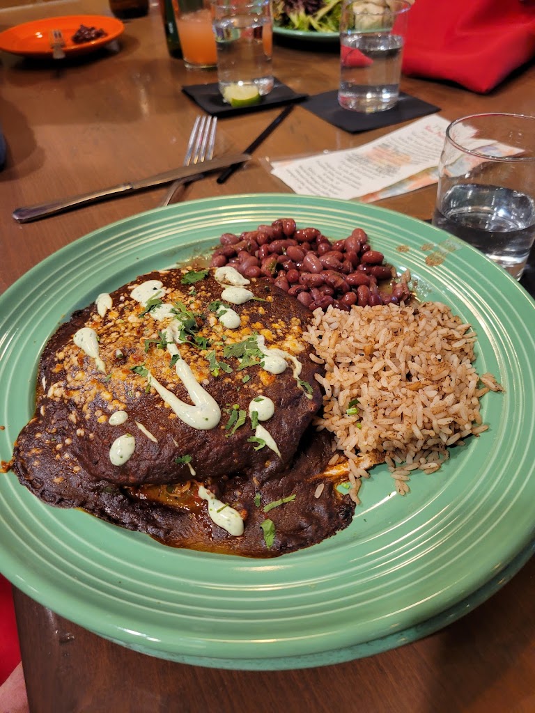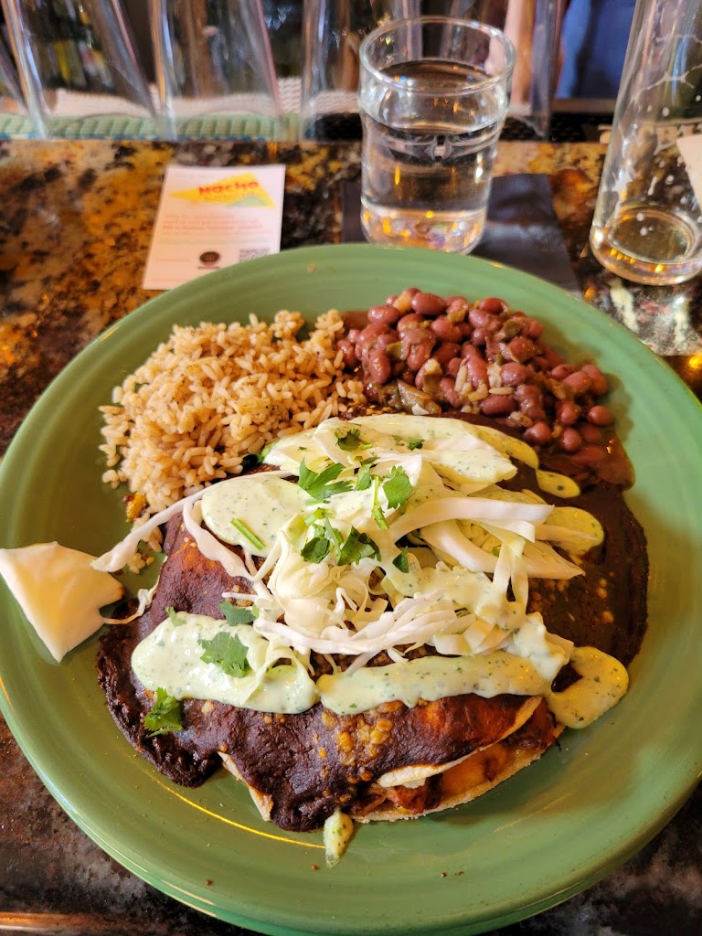 I ordered the chips and salsa along with the Mole Chicken Enchiladas. Probably one of the best dishes I've had in a long time. Ton of flavor and very fair portions. Service was superb, my only gripe is I wish the ac would've been on.(a little warm inside) Great experience overall! Thank u guys.
