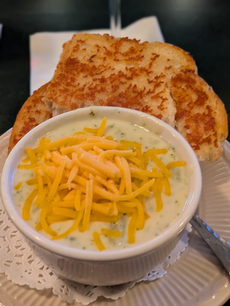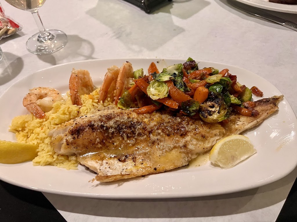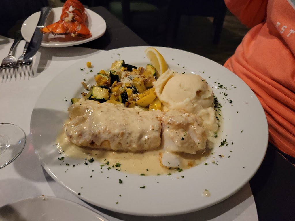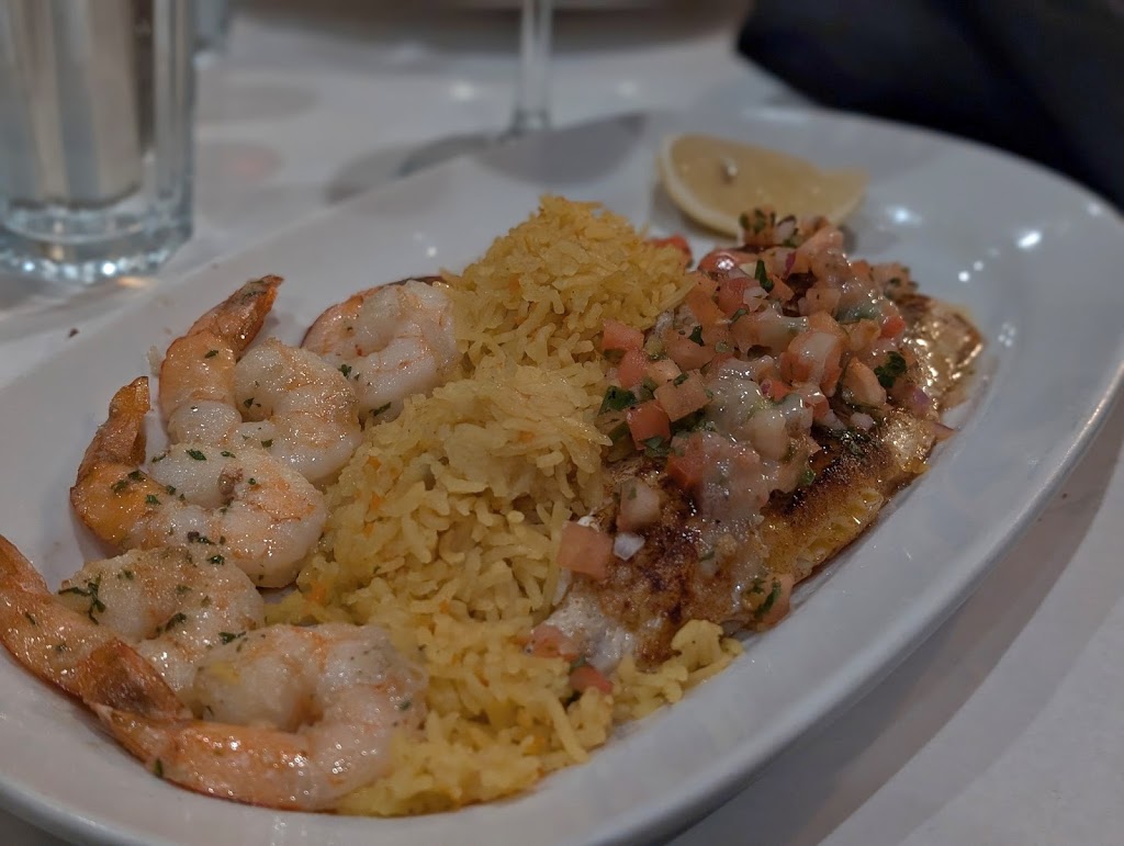 My dinner was the walleyed pike and shrimp dish and was delicious. Both items were prepared with garlic butter and served over rice. The shrimp bisque appetizer was one of the better soups I've had in a while.