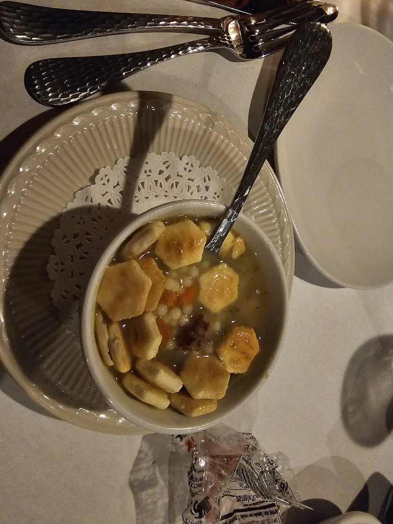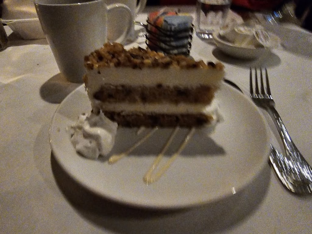 In no way was I wowed by the food. The walleye simply did not taste good and left a bitter aftertaste in my mouth. I only took two bites and could have no more. The French onion soup was also nothing to write home about. I will say however though my mother had ribs which she was raving about so that is definitely something.