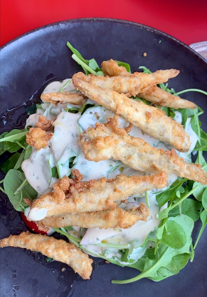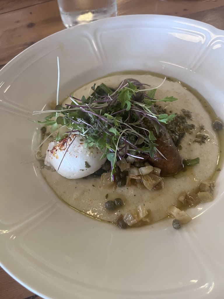 Wonderful brunch at Sardine’s. Crab, bacon, lardons, and shrimp cakes were unbelievably delicious, composed of adobo beurre blanc, two eggs any style, mixed greens, parsley, and pickled red onion salad. Service by Sam was first rate. Highly recommended!