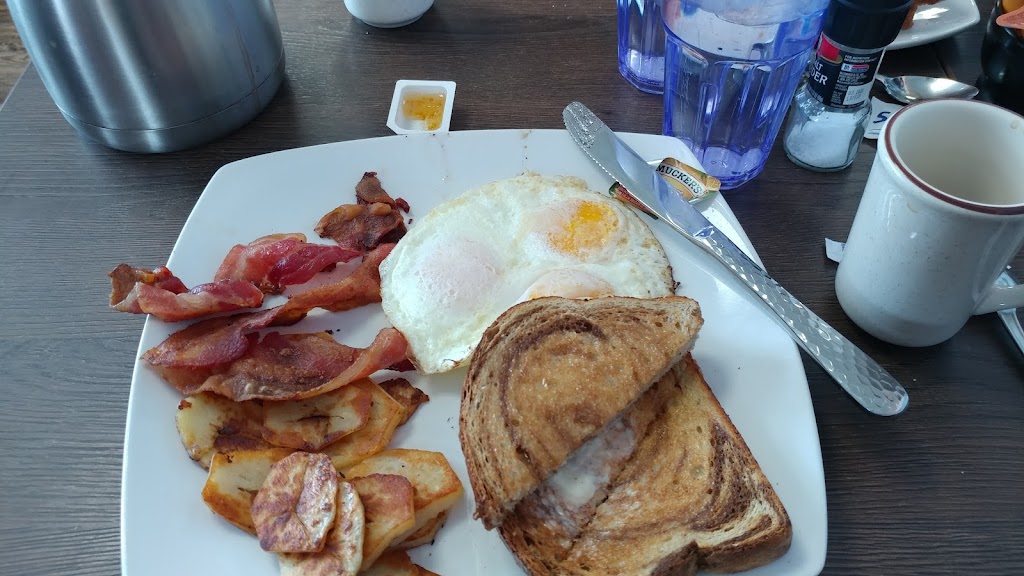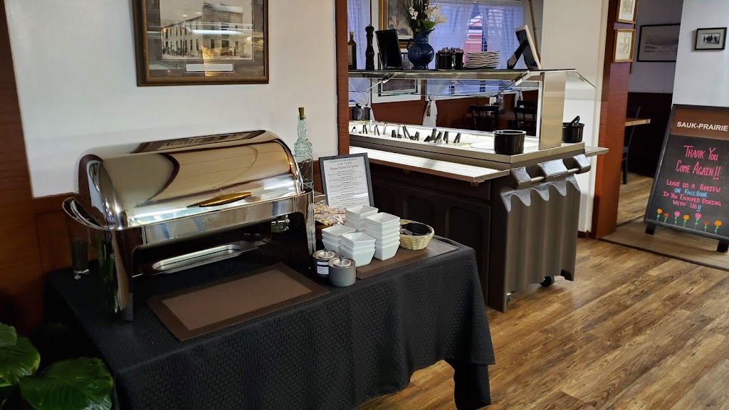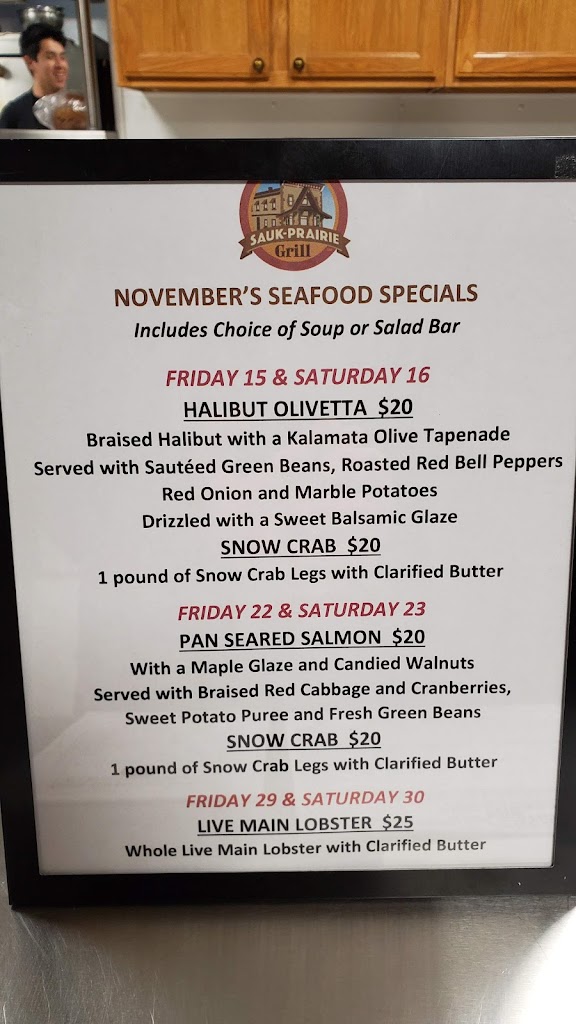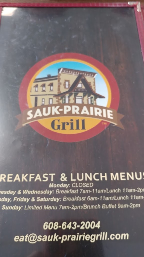 Hungry after a trip to see the eagles. Sauk-Prairie Grill is a family-style, sit down restaurant with an amazing menu. As I passed a display case of pecan sticky buns and frosted cinnamon rolls, I found heaven!! I would have tried their Belgian waffles, but on this trip chose a hearty breakfast of 3 eggs over medium (runny yolk, hard whites), American fried potatoes, bacon, and toast. The coffee was a medium to dark roast and refillable from the carafe left on the table. Wish I had stocked up on the bakery for home, but I was not thinking about food on the way out. Polite, friendly, efficient waitress. The order was 100% correct, served hot! Prime rib on the menu for tonight (Saturday)! Super clean. Definitely will stop on return trips!!!