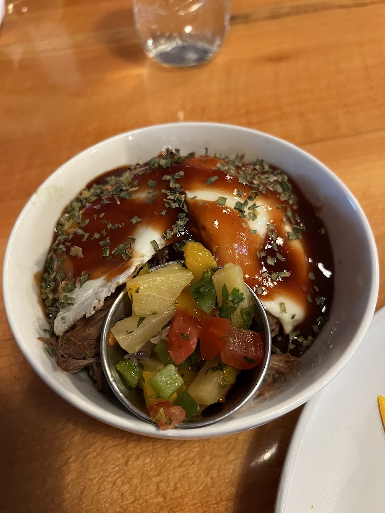 Really enjoyed coming here and all the food I tried. Pictured you will see the Pickle Pepper Grilled Cheese and loaded smashed potato. Also tried the house scrambler with chipotle hash browns and a cinnamon roll. All excellent!
