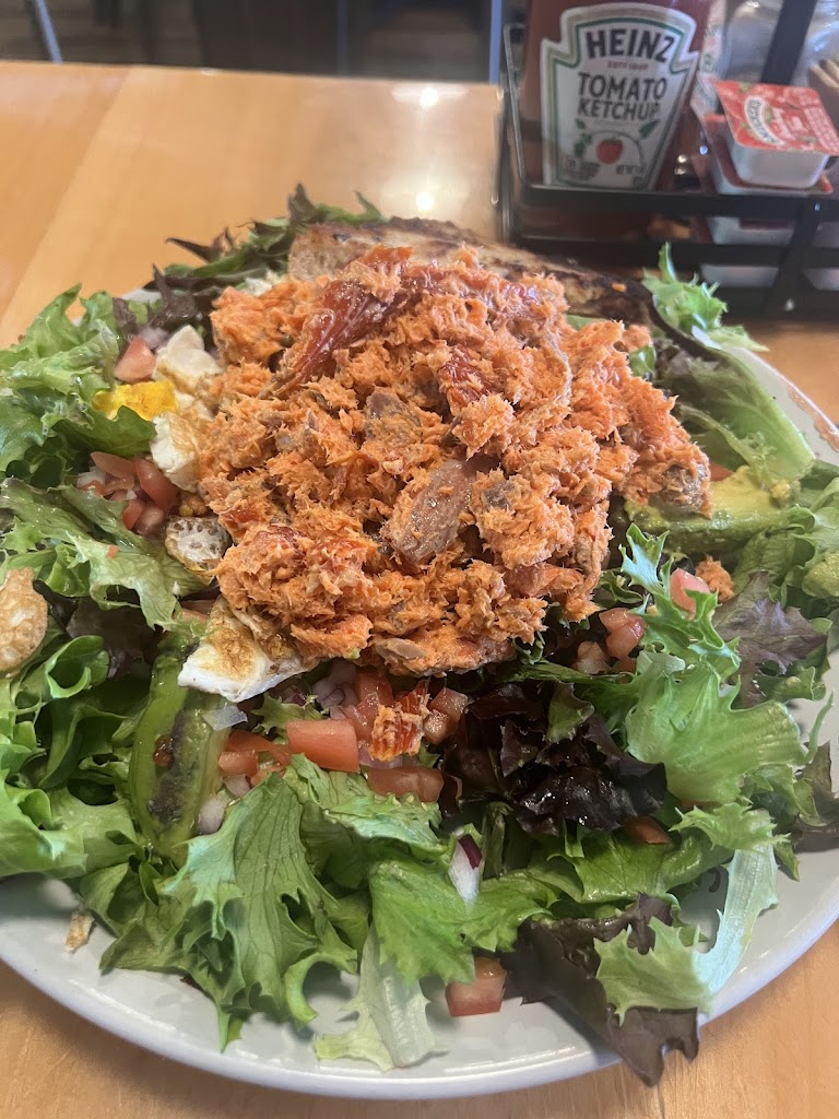Went in for lunch with a guest. First timer. Latte was top notch, chicken salad sandwich was delicious. Side salad would have been wonderful..... unfortunately CHEAP store bought blue cheese dressing. Ruined it for me, such a disappointment. Otherwise a very nice cafe, pleasant wait staff, reasonable prices. NOW an update. Went back for a second meal. Again latte was delicious, I had a BLT on their toasted potato chive bread..... amazing! The cheesey hash browns were equally YUMMY, a big cookie to top it off......I left full and content.