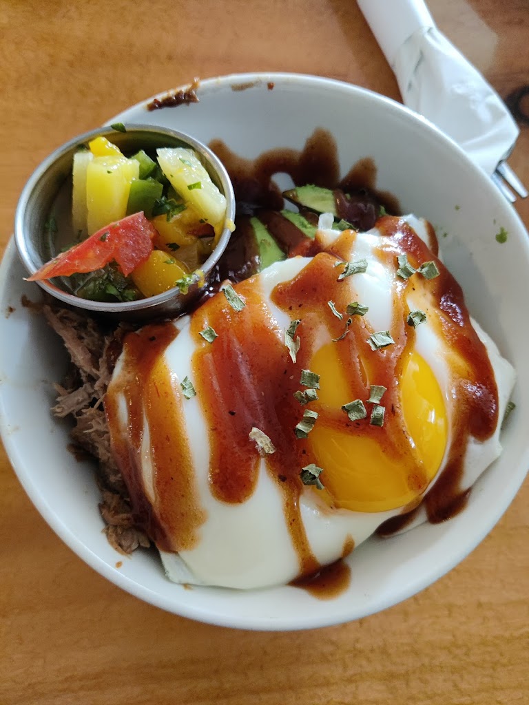 Went here on Sunday. Staff warned us there would be 30-35 min wait for food and I appreciate the heads-up. Not sure why such a long wait as all tables weren't full. Son & wife enjoyed coffees, I had iced tea which was average. Glad my reflexes are still good cuz person who delivered tea (wrong the 1st time) couldn't get away fast enough & nearly dumped on table. Out of cinnamon rolls (before noon) so had coffee cake instead, was good but would have preferred roll. Son enjoyed omelet, wife had Sweet Crunch Sandwich which was adequate. I had Rice Bowl; no idea why it is called that as there was maybe a tablespoon of rice in bottom, was mostly cabbage and maybe 1.5 oz pulled pork. Sad when I paid what I did for breakfast and had to go home to get a snack. Rarely saw server (poor guy in table next to me had to go to counter to place his order after a few minutes of trying to flag someone down). I get the feeling they just don't care.