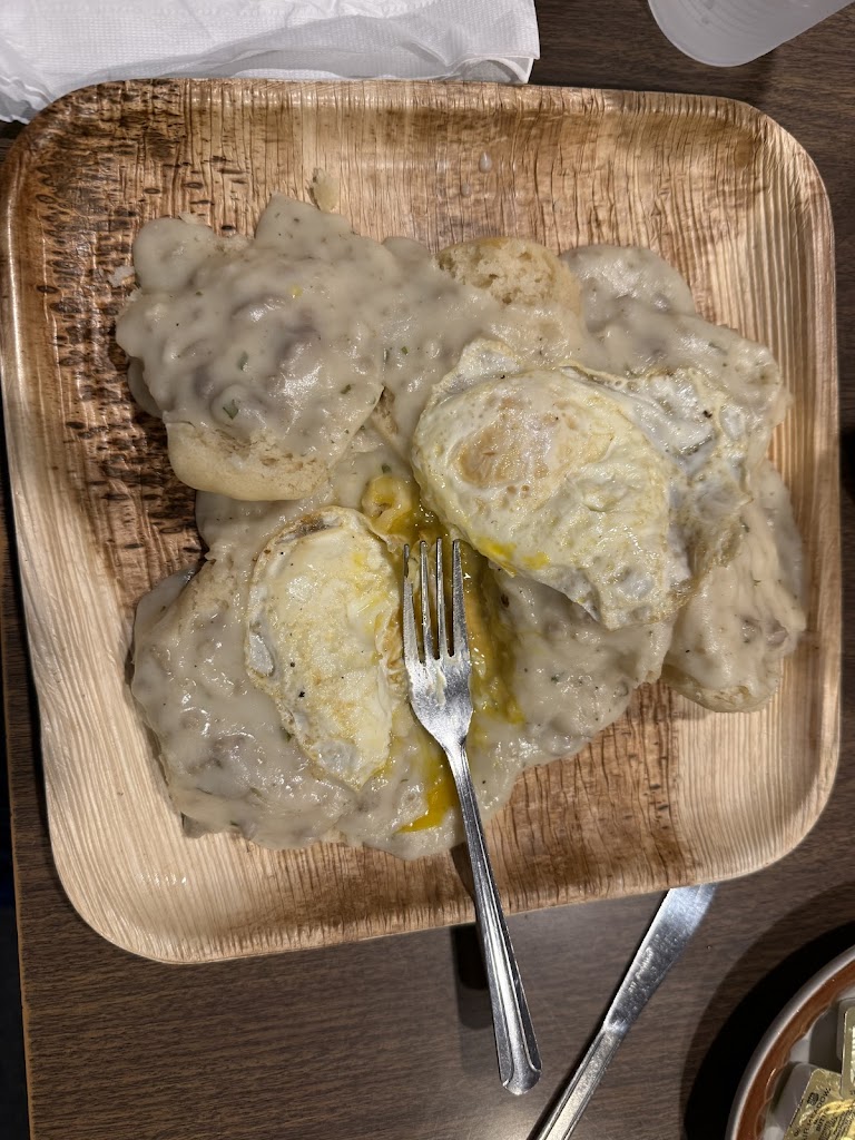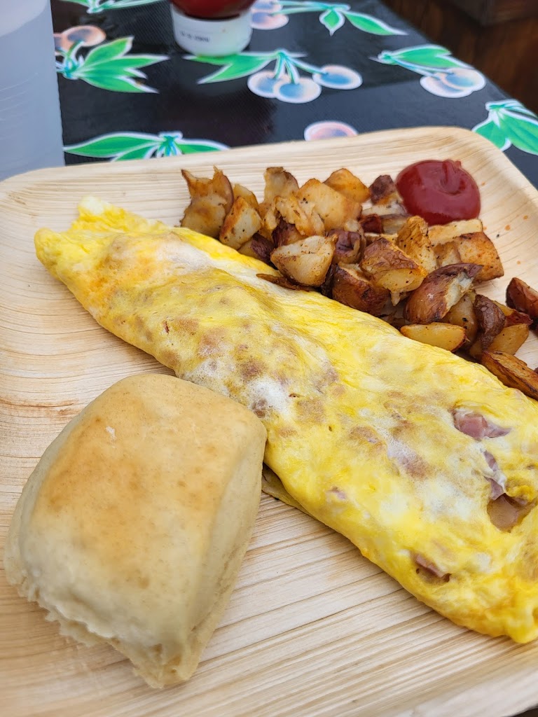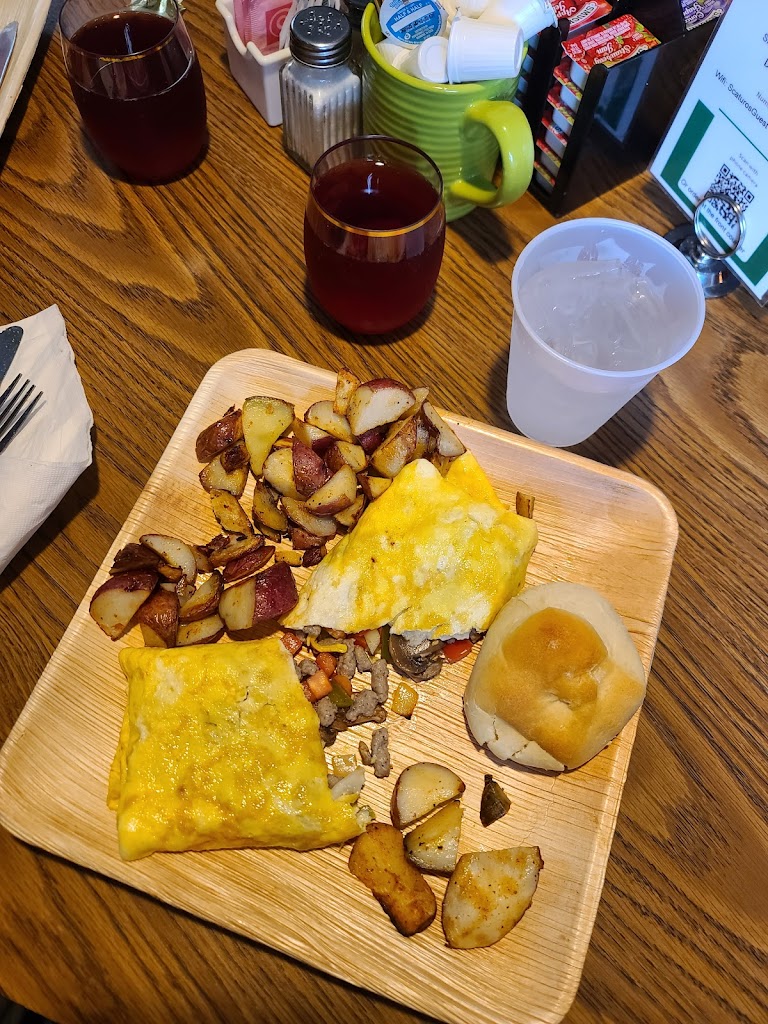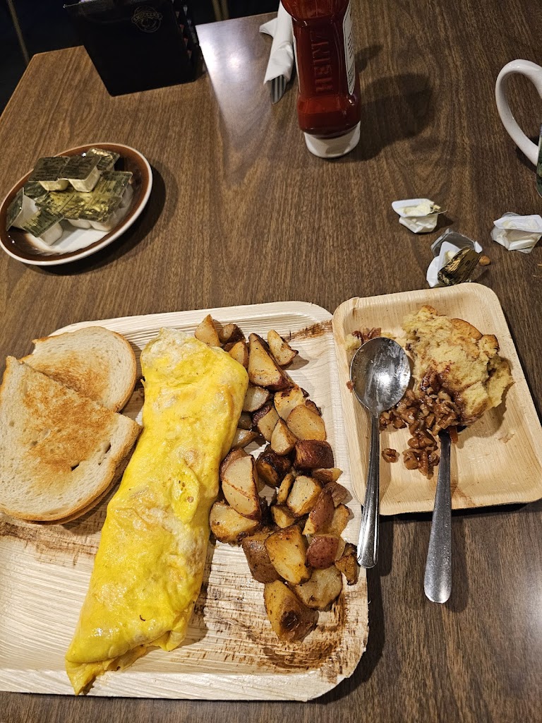 When the food finally arrived—on paper plates with plastic utensils, it didn’t get any better. Between the pancakes, French toast, skillets, potatoes, and omelets, nothing stood out. Nothing special.