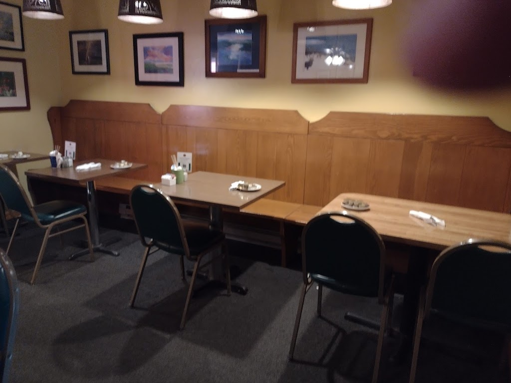 Great food, great waitresses. Atmosphere was 4 because of layout of restaurant and online and up front ordering only. I don't mind ordering on app but the older people in my group had issues because they don't use apps much.