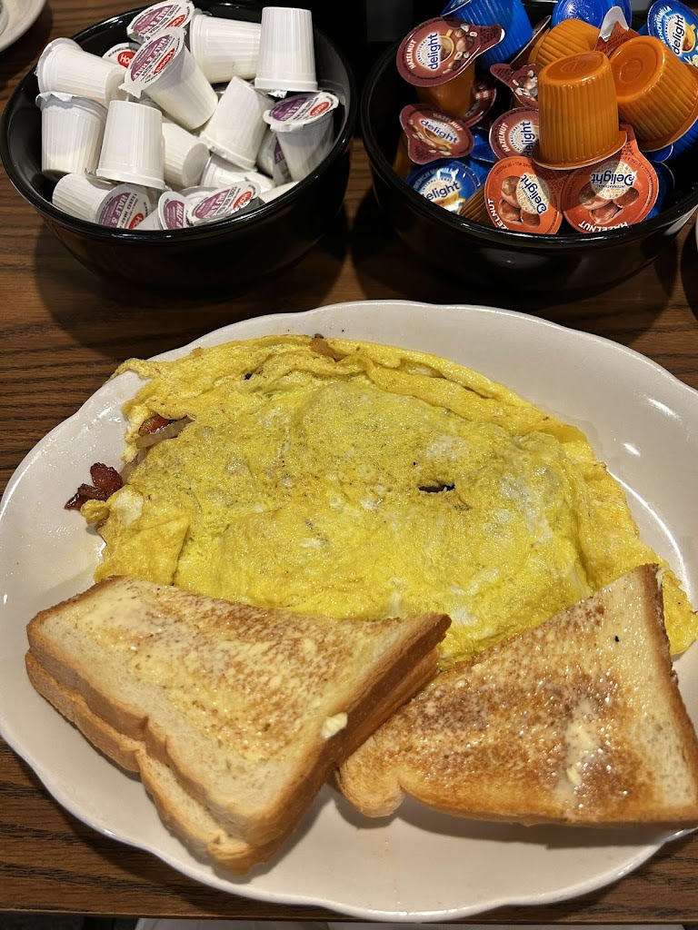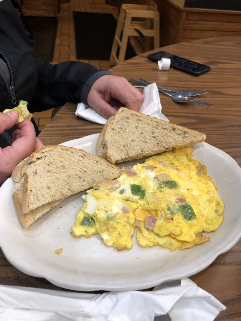 Waitress was great and super attentive. Ordered a mexican omelet with no tomatoes, and I saw the cook put tomatoes on and scrape it off... when it came to me, you could see bits of tomatoes and the juice on top. I have a low-grade tomato allergy, so I had to ask her to send it back. Bad call on his part. The omelet was very good, though, and pricing was good. We'll be back.
