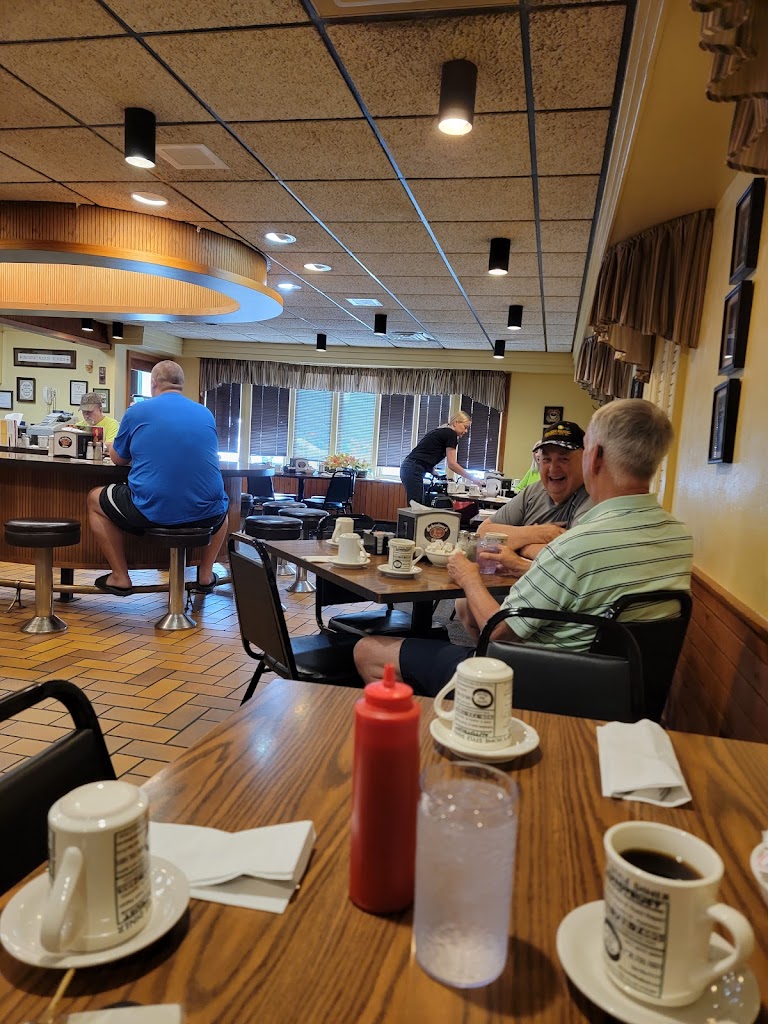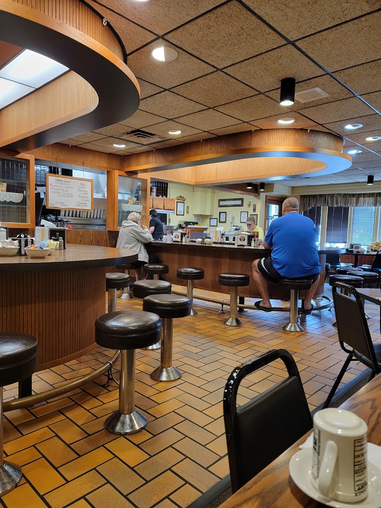 Fixture for classic American food, including breakfast, in a homey setting with U-shaped counters.