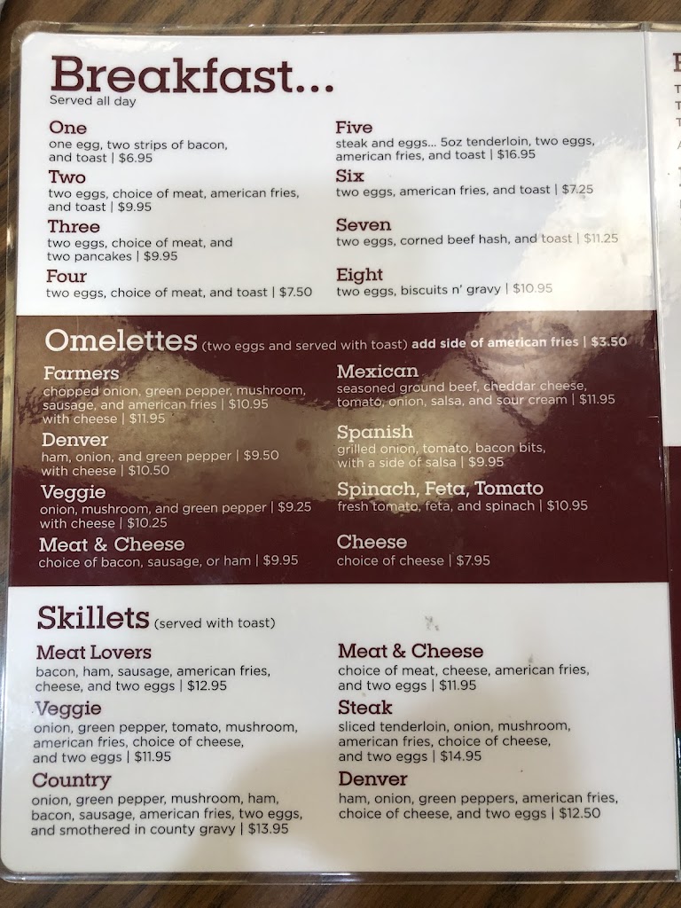 Wow! Yummy- very friendly staff and “home atmosphere.” I ordered the Denver Skillet with Raisin bread! Bread was delicious, definitely recommend the raisin. Skillet was cooked perfect as well, have to admit one of the best breakfast diners in town! Hidden Gem-!