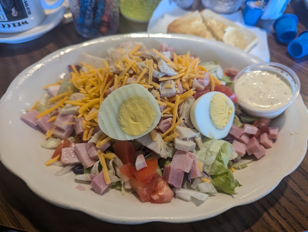 The place has a wonderful, local vibe. It’s reminiscent of places my grandma would take me or gather with her friends. The table, flatware, dishes were all clean. Nothing was sticky. However, the place could use a good “once over”. The entry was speckled with leaves and dirt, the carpeted floor (Well, it’s carpeted. Say no more). Wall decor had a bit of dust. But don’t let this deter you, the place has charm without feeling like you want to immediately turn around when you come in. And saying that, you can see the entire place when you walk in because it’s small and cozy with table seating and bar/cafe seating.