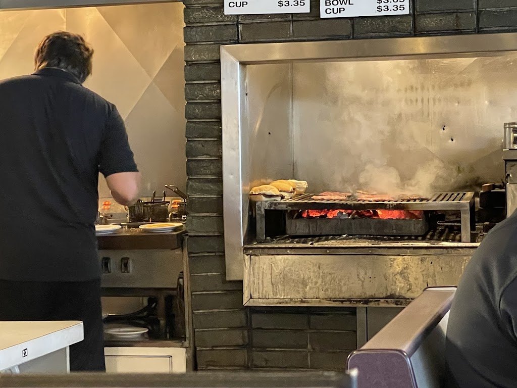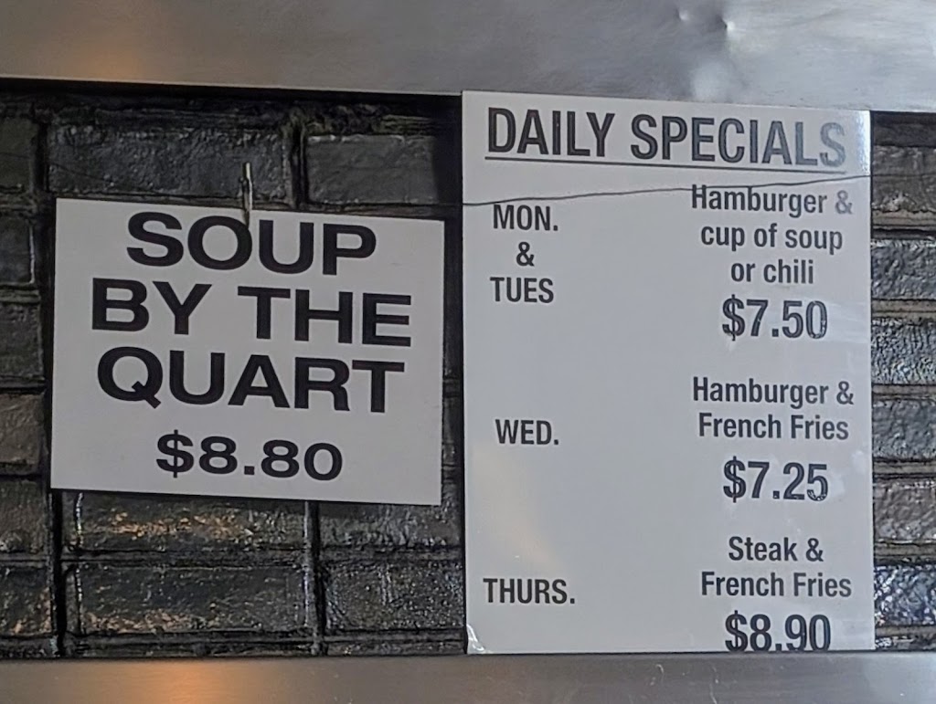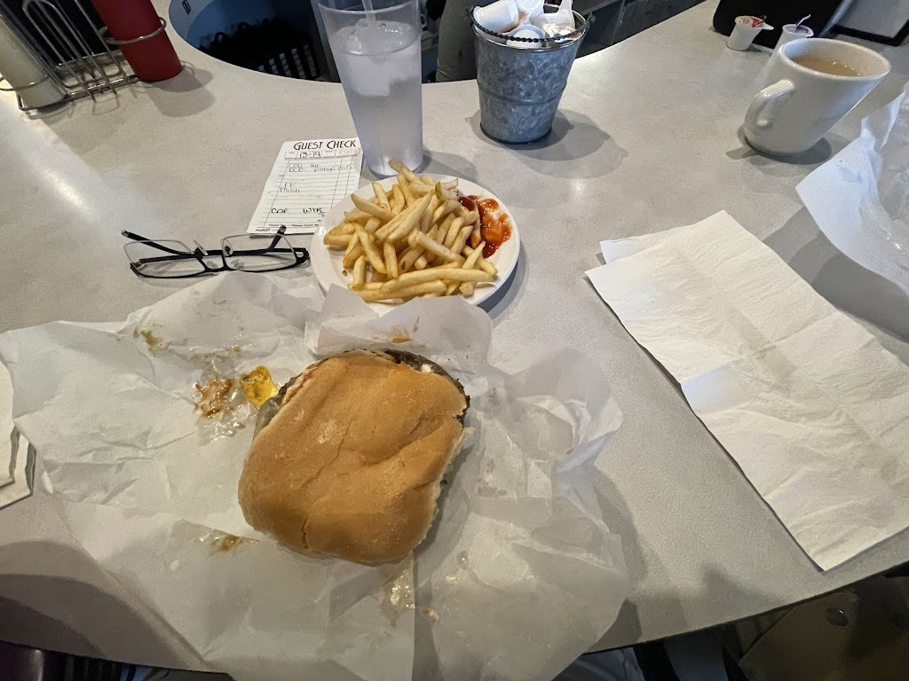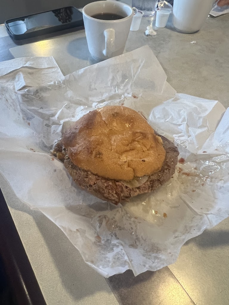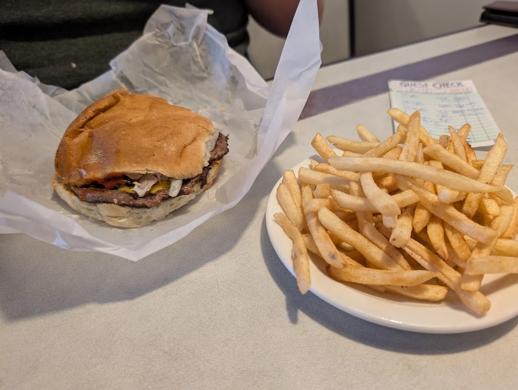 Great burgers and brat patty sandwiches cooked on a charcoal grill. The service was good. It isn’t large, seating for about 50 but the atmosphere is terrific. Like an old style diner. Just remember it’s cash only!