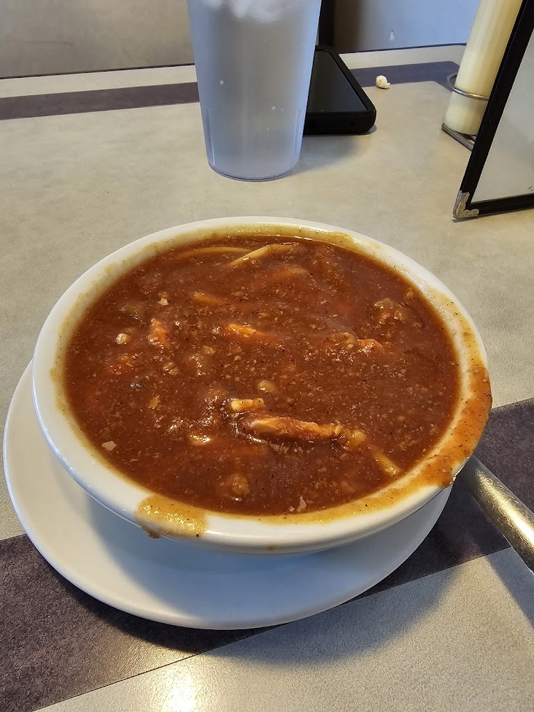 I had the chili was ok but not the best kind blah tasting. I had roast beef dinner and potatoes. My roast beef was cold two times now. The potatoes were running both times very blah tasting. Remind you the waitress left before I could even finish my order. I want chili and my mom had to say something and when I got it she slid the bowl on the table. Prices are not worth amount food you get. THE WAIT STAFF IS VERY RUDE. NEVER CHECKED ON US. I will not go back and I will support another family owned business where the people are not rude. They know they have it golden because Charcoal Grill and Bills cafe closed.