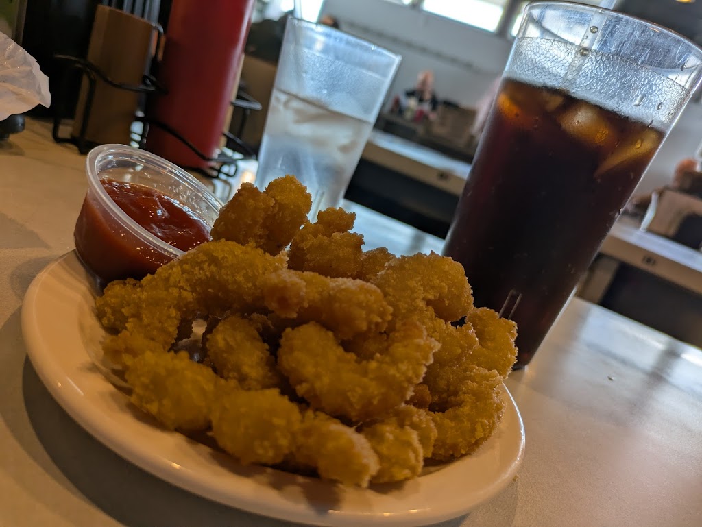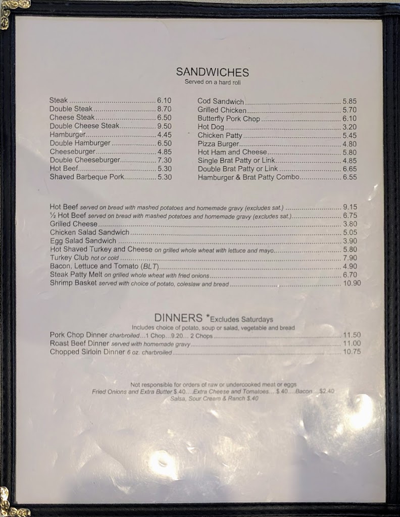 Grab a table or sit at the counter for some great food off the grill. I had a double cheeseburger and my wife had the brat link. Though she was disappointed they don't garnish the brat with sauerkraut, she loved it! Ditto on the burger, and the onion rings!