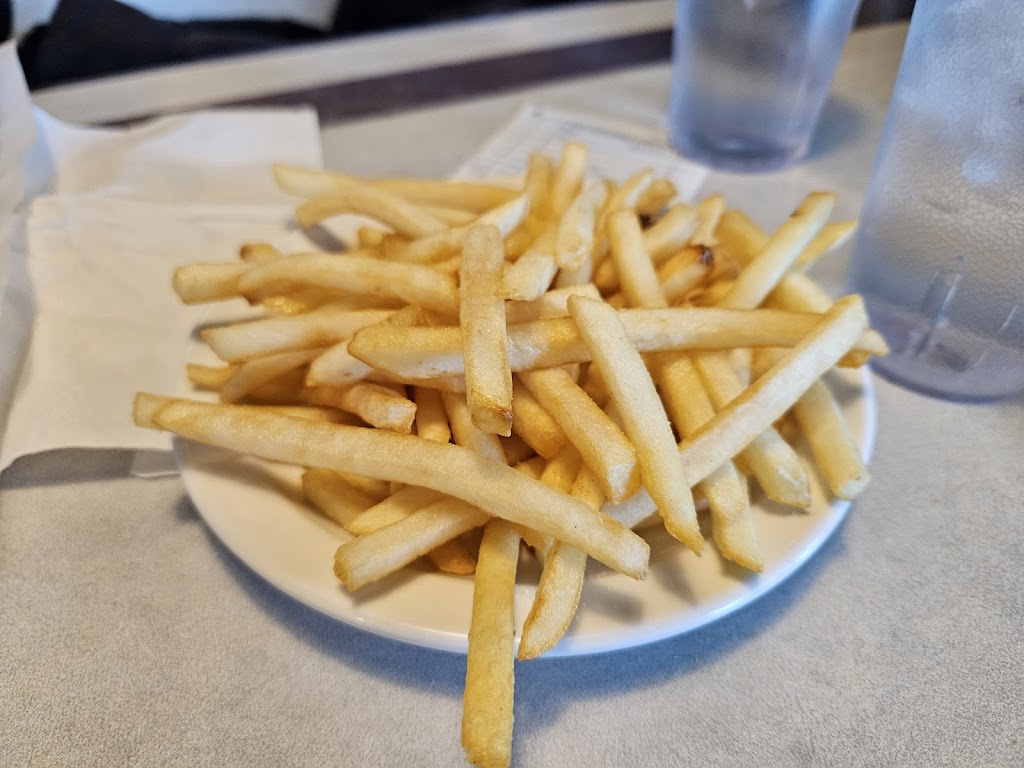 We enjoyed a steak sandwich, cheeseburger, and fries. Service was quick and courteous. The fries were really fresh and delicious.