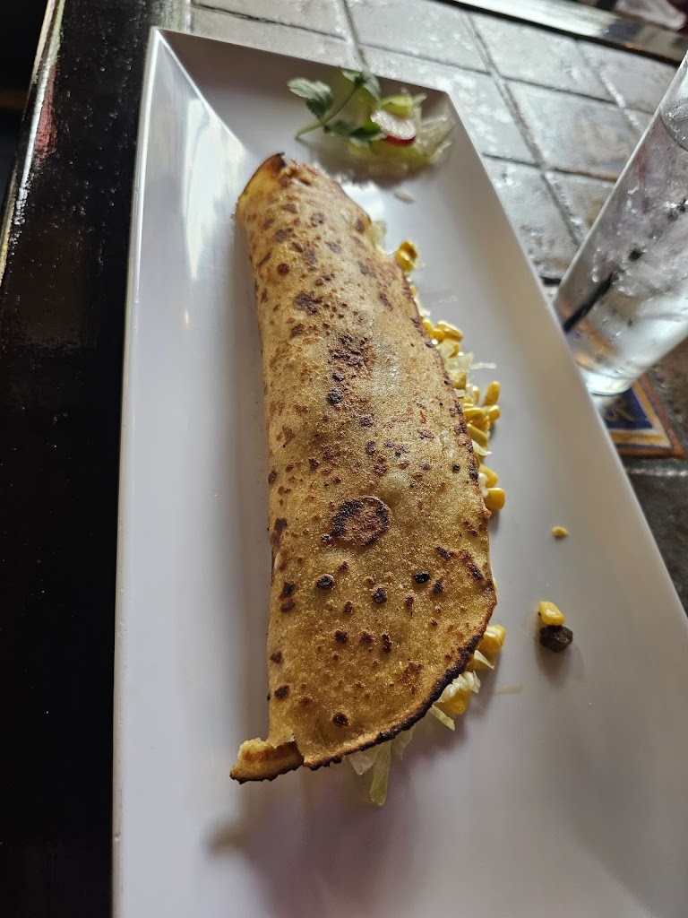 Mia was so great! the food (tamales y esquites con queso) was amazing. Tamales were very rich in flavor and balanced, street corn was great but super rich and cheesy if that’s not what you’re into. Mía let us know about the drink deals and happy hour as well