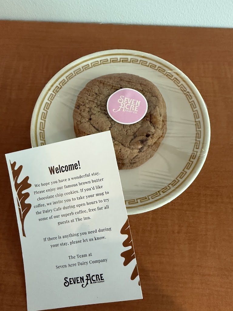 We certainly enjoyed our stay and loved the dairy theme! A bit pricey, but the room was large and clean. The cookies were a nice touch. The bar closed fairly early unfortunately, but we enjoyed a cocktail prior in the park across the creek which also had live music. The outside was a bit disorganized with outdoor furniture not clean, wet, and toss around. The dairy shop was an enjoyable experience, and we bought some delicious cheese to take home.
