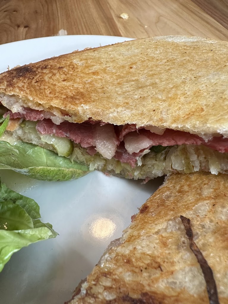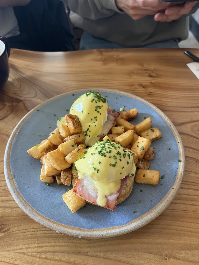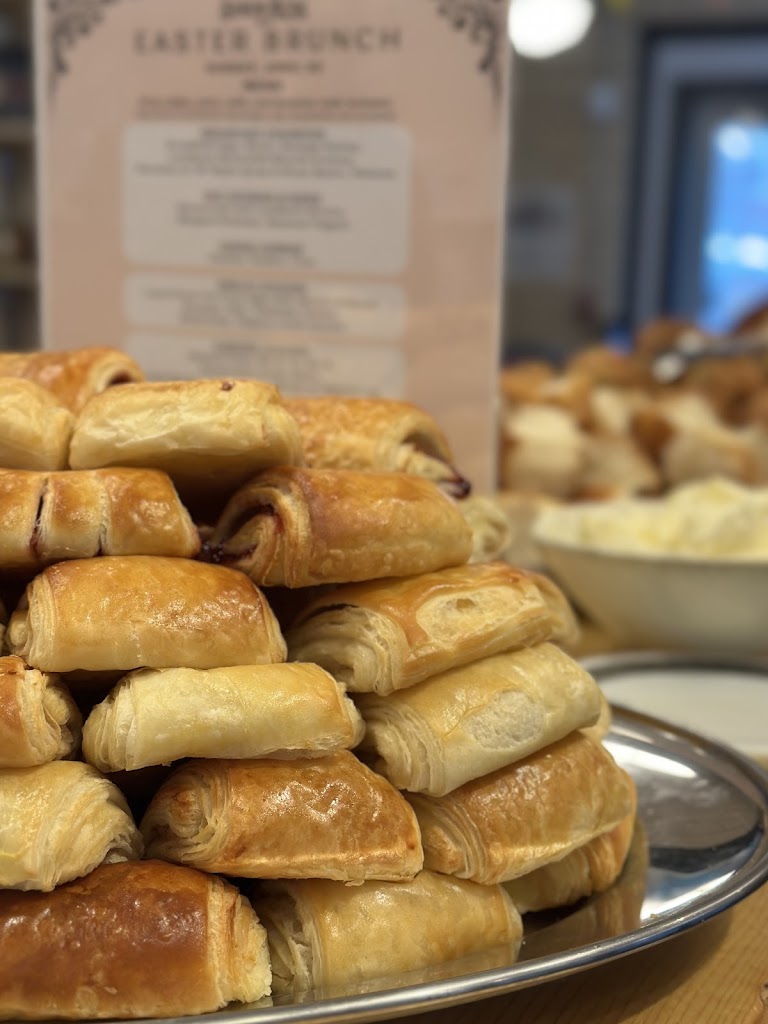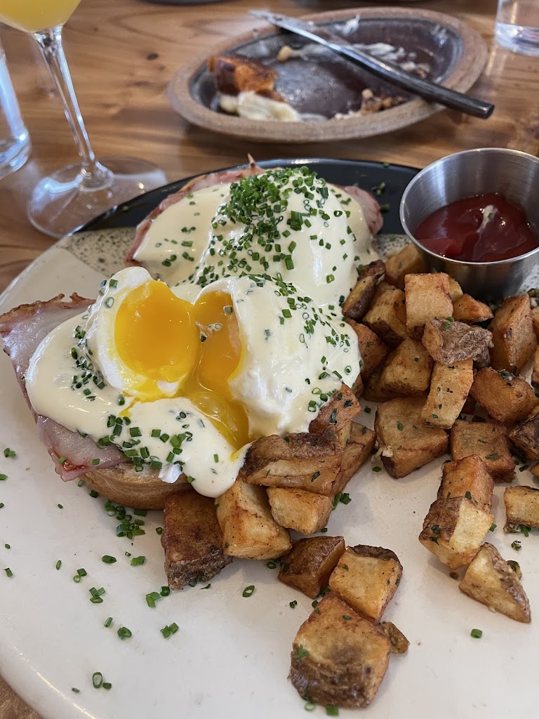We came for Sunday brunch in a large party of 13. Seating was very nice, the waitress attentive. However, many items that were advertised were not available. I requested black tea, and they were out, so I had chai. It came in a mesh bag that was open, so all the spices and tea had migrated into my cup. It was tasty, even though I had to pick tea leaves out from between my teeth. Then I went to order breakfast. I requested French toast. Sadly, they were out of French toast, although how they could give toasted bread with their other orders escapes me. I cannot eat eggs ( mixed with pancakes or inside of French toast is tolerated), so I ordered a medium rare hamburger. It came to me medium well. It tasted good, but I really miss that pink in the middle and the extra juiciness inside. I then wanted a mimosa, which I got fairly promptly, but they added my bill for that to another member of our group( semi separate checks), so we had to figure that out. Some meals came to a few people early, others came late when most of the party was nearly finished.