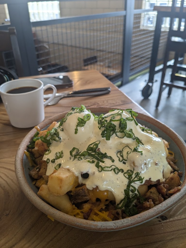 Stopped in on a Monday around noon. Food was average. Service was slow. Ordered a mocha and a black tea for drinks. Mocha was OK. Not sure what we received instead of tea...