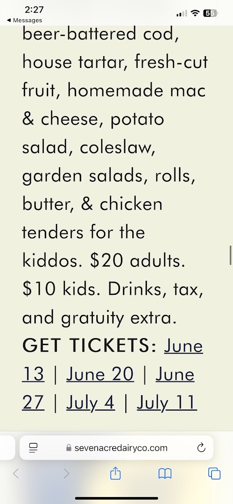 Fish fry was SO Delicious and the atmosphere next to the river was just perfection ! ALL YOU CAN EAT? Great cocktails and homemade ice cream at their creamery just a 100’ away. It was just gorgeous and I’d go every week if I could . Crew did a great job with set up and every dish was on point! Thanks chefs!