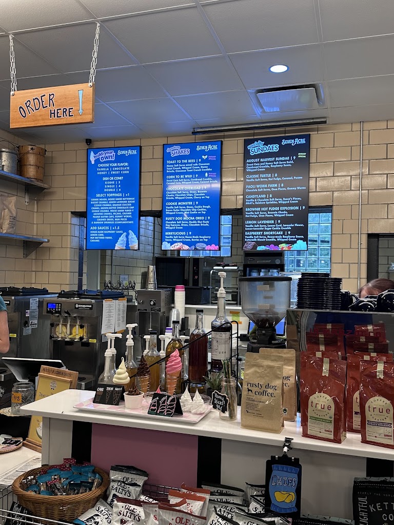 Went there for lunch and was a bit disappointed. Overall Atmosphere was really good and community was adorable. Service was terrible. Food showed up inconsistently and had to end up getting our own drinks we ordered towards the end of meal despite asking several times. Had to ask for all condiments and that was also inconsistent timing. Prices were a little high and menu was very limited with choices and overall underwhelmed with quality of choices for food. Ice cream was good.