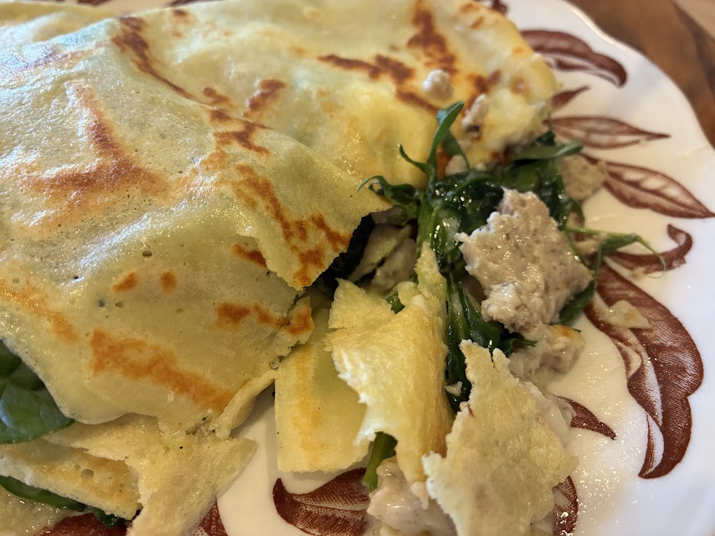 Came here on a Saturday morning with a friend. I got the KC Classic which is one of their savory crepes and it was only okay. I feel like it’s my own fault for not going with a traditional sweet crepe, because I’m sure those are phenomenal. Service is okay for what it is; order at the counter and they bring out your food. So truly, service wasn’t an issue for us and everything came out as it should. The vibes are that of your grandmothers farmhouse; very cute! My friend got one of their seasonal lattes and really enjoyed it (how can you NOT enjoy a toasted marshmallow atop your drink?!). It seems to get very busy here on the weekends so be sure there’s a table then order your food. I would love to come back to try one of their sweet crepes.