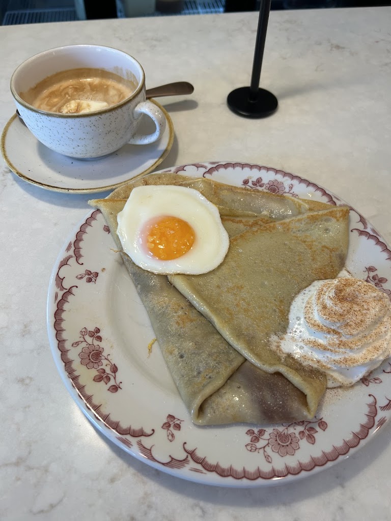 Delicious savory crepes! And they really know how to caramelize onions. They should prewarm their espresso cups though as otherwise the shot cools down fast