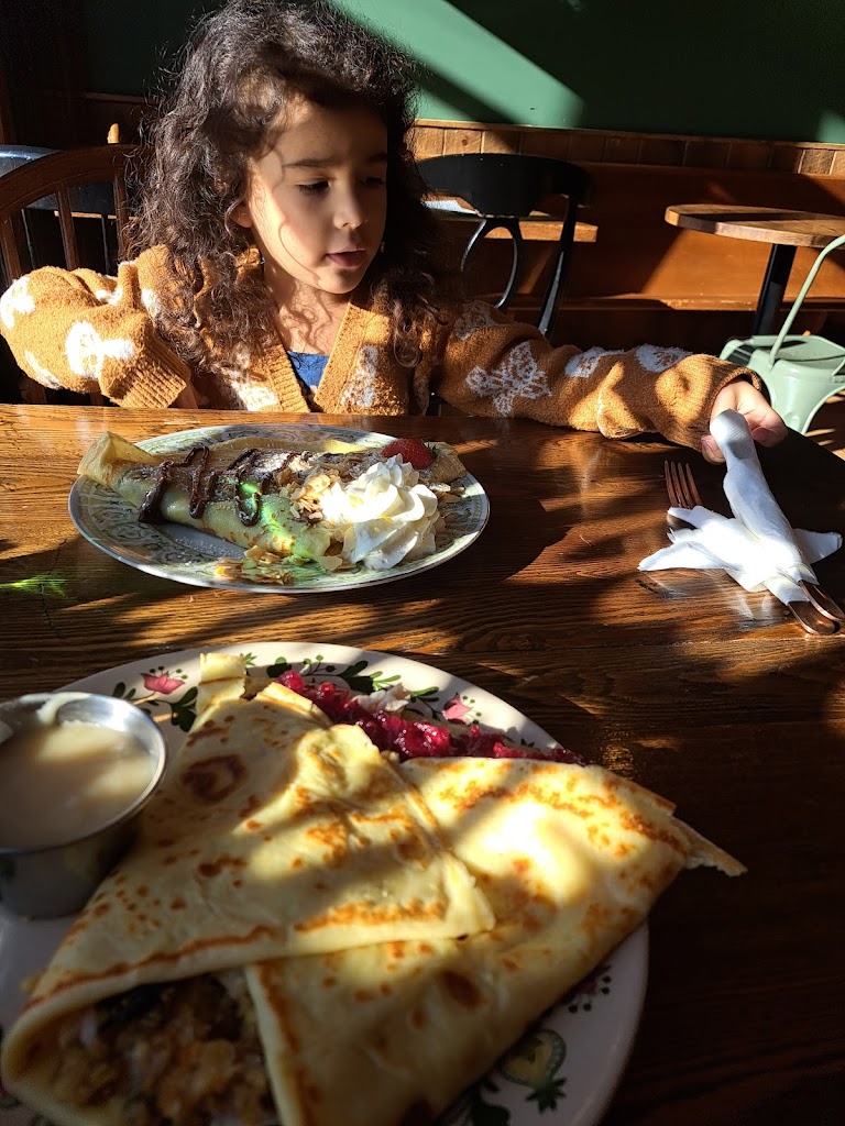 My wife discovered this gem a couple months back and has been a few times since. I got to go for the first time this week and it was awesome. The food was so good. We got the Vermonter and the Forrest Crepes and our kids got the monthly special Butterbeer Crepes. All of it was so good. Also, though we have a nut allergy, they were willing to work with us, which we appreciate so much! Ambience is great, very quaint and homey. Can’t wait to go back!