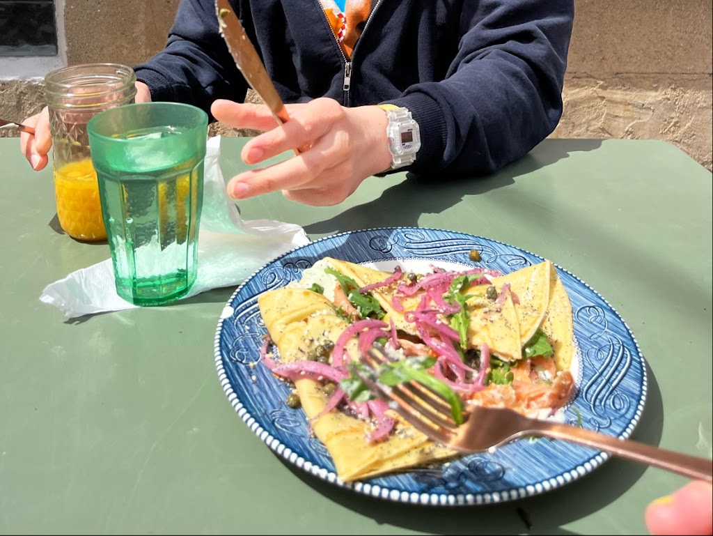 Really delicious crepes and perfect portion sizes for breakfast. Casual seating with sunny, cozy window seats. Great staff. Good place to hang out.