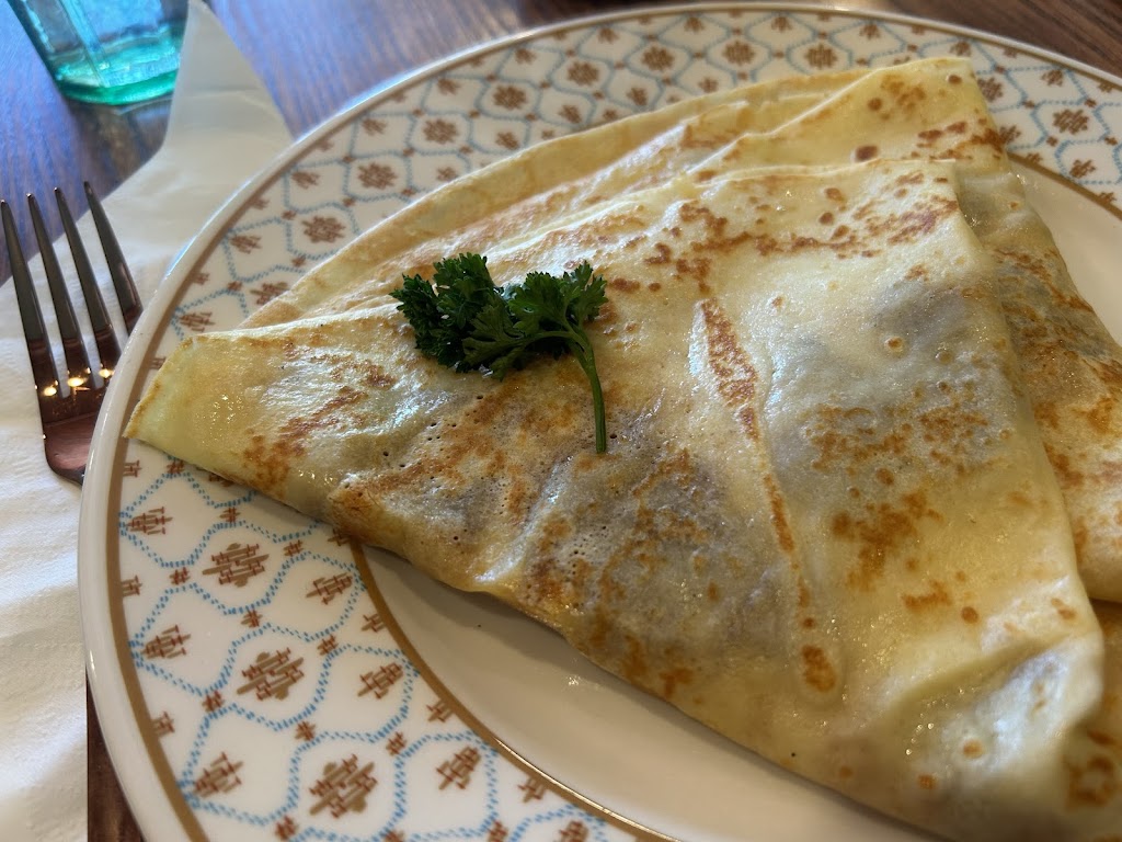 Wow this place is a must go to dining experience, while the prices are on the higher end your paying for more then the crepe which was so yummy, the atmosphere really stands out as must have Kansas city immersion experience! I got their seasonal crepe, the rhubarb crisp. I love a good rhubarb crisp and so loved there twist on it although it was a bit on the runny side for me. My cousin got their KC classic which I much preferred, the filling to crepe ratio was perfect! On top of it all they provide complementary water and coffee which for me was the cherry on top of my whole eating experience! Would 10/10 recommend a visit and check out their waiting poetry as well!